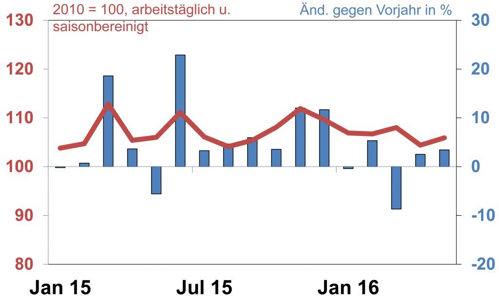 Im Mai dieses Jahres hat die deutsche Elektroindustrie insgesamt 3,4% mehr Bestellungen erhalten als vor einem Jahr. Die Inlandsaufträge stiegen um 2,4%, die Auslandsaufträge um knapp doppelt so viel (4,6%). Kunden aus der Eurozone bestellten 5,7% mehr als vor einem Jahr. Die Bestellungen aus Drittländern legten um 3,7% zu. „Aufgrund des einem Basiseffekt geschuldeten starken Rückgangs der Auftragseingänge im Monat März kamen die Bestellungen für die Branche im kumulierten Zeitraum von Januar bis Mai 2016 allerdings nicht über ihren entsprechenden Vorjahreswert hinaus“, sagte ZVEI-Finanzexperte Dr. Andreas Gontermann. Hier gaben die Inlandsaufträge um 0,8% nach, die Auslandsaufträge erhöhten sich um 0,6%. Aus dem Euroraum gingen in den ersten fünf Monaten 1,7% mehr Bestellungen ein, Drittländer orderten genauso viel wie im Vorjahr. Die Produktion der deutschen Elektrofirmen ist im Mai dieses Jahres um 6,5% gegenüber dem Vorjahr gestiegen. „Damit wurde das bereits gute Vormonatsergebnis leicht übertroffen und das vergleichsweise schwache erste Quartal mehr als kompensiert“, so Gontermann. Mit 14,1Mrd.E lagen die Erlöse der deutschen Elektroindustrie im Mai dieses Jahres um 5,8% höher als vor einem Jahr. Der Inlandsumsatz zog um 7,1% auf 6,8Mrd.E an, der Auslandsumsatz um 4,7% auf 7,3Mrd.E. Während die Geschäfte mit Kunden aus der Eurozone leicht um 0,4% auf 2,5Mrd.E rückläufig waren, gab es bei den Erlösen mit Drittländern ein Plus von 7,6% auf 4,8Mrd.E.