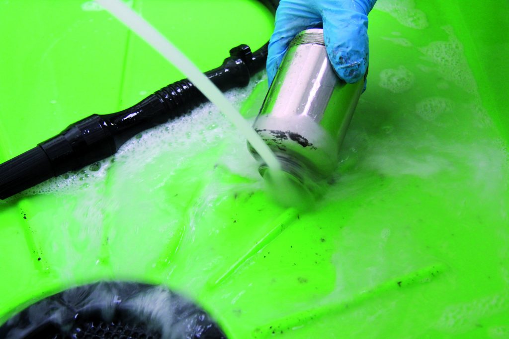 Die Geräte finden überall dort ihre Anwendung, wo ölige und fettige Bauteile gereinigt werden müssen. –