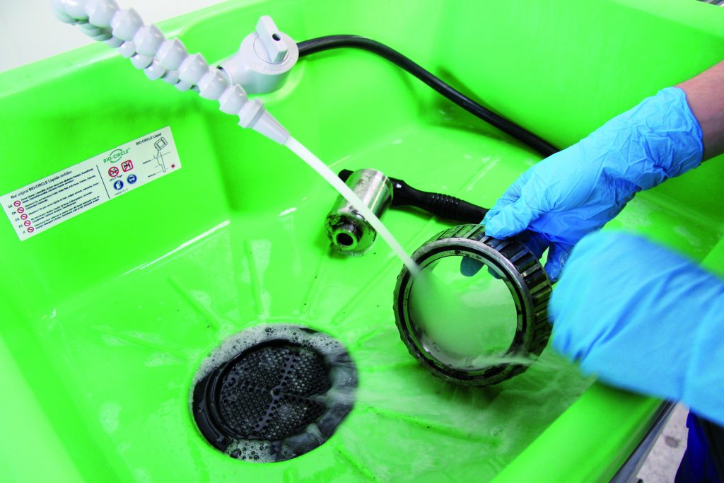 Bei den Pinselwaschtischen des Unternehmens Bio-Circle Surface Technology handelt es sich um biologische Teilereiniger. Sie sind in zwei unterschiedlich großen Varianten erhältlich und kommen ohne Lösungsmittel oder Kaltreiniger aus. Anwender profitieren von einer einfachen Bedienung sowie einer schnellen, sicheren und umweltschonenden Reinigung auch stark verschmutzter Teile. Die Pinselwaschtische finden überall dort ihre Anwendung, wo ölige und fettige Bauteile gereinigt werden müssen. „Das heißt in der Werkstatt ebenso wie in der Produktion unterschiedlicher Industriebranchen“, sagt Renate Thörner, Produktmanagerin beim Anbieter.