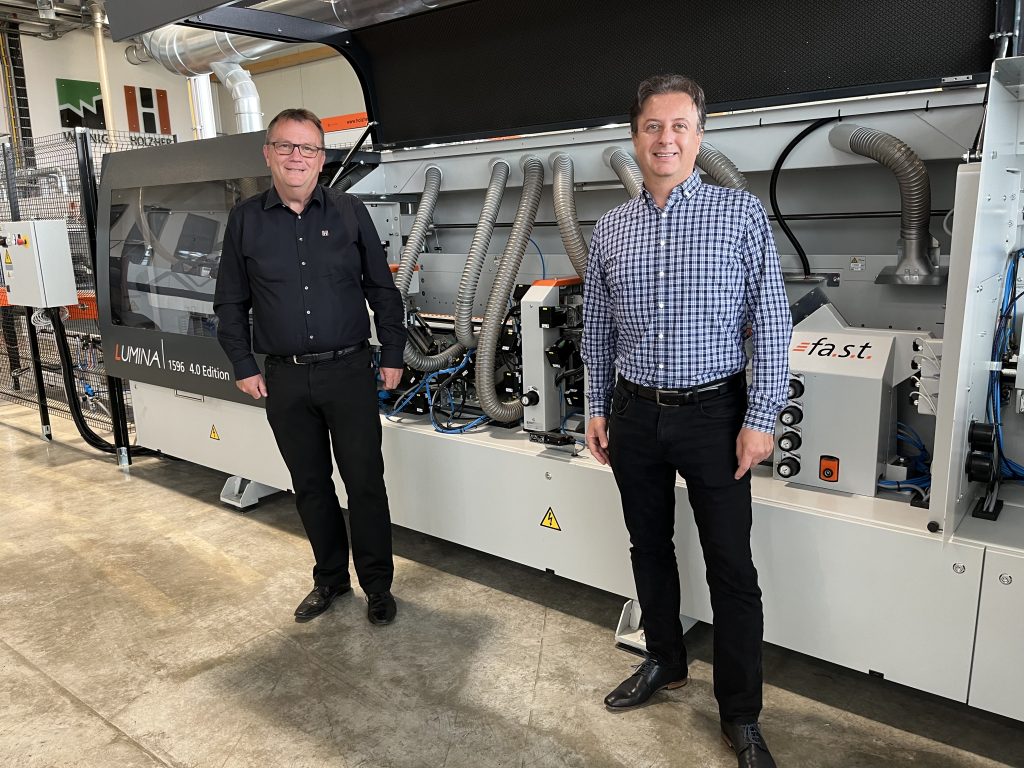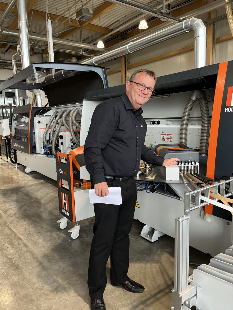 Aktuell werden automatisierte Aggregate auch für einfache Kantenanleimmaschinen bis hin zum Einstiegsbereich angeboten. „Vor ein paar Jahren wäre das noch ein Tabu gewesen, da die Kunden das nicht erwartet haben“, erklärt Lorber. Dass immer mehr Automatisierung auch für Einsteigermaschinen selbstverständlich wird, dafür sei auch der Facharbeitermangel mit verantwortlich. „Während früher Fachkräfte vor Ort wussten, wie Maschinen einstellt werden, sind unsere Kunden heute auf Maschinenbediener angewiesen, die vielleicht noch wissen, wo sie ein Knöpfchen drücken können.“ Das erhöht das Tempo der Automatisierung, die bis in den Einstiegsbereich reicht. Dieses Phänomen sei nicht nur in Deutschland, sondern weltweit zu beobachten.