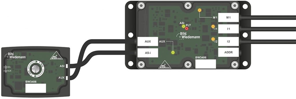 Bihl+Wiedemann hat speziell für die Montage im Kabelkanal eine Gehäusevariante entwickelt, die sich durch ihre flache Bauform von 90x80x18mm auszeichnet und damit für vielfältige Montagesituationen eignet. Neben den beiden Motormodulen für 24V-Rollenantriebe von Herstellern wie Itoh Denki, Interroll oder Rulmeca ist das Gehäuse jetzt auch für das AS-i-Motormodul für SEW-Frequenzumrichter der Serie BW3406 verfügbar. Mit dem Modul zur Steuerung eines Movimot-Antriebs, das einen integrierten Passivverteiler beinhaltet, lassen sich folgende Funktionen realisieren: Steuerung von Start/Stopp, Drehrichtung, Beschleunigungsrampe, Geschwindigkeit durch auswählbare feste Geschwindigkeitssollwerte und die einfache Ansteuerung von Festfrequenzen. Der Peripherieanschluss erfolgt über drei M12-Buchsen. Dabei ist eine für den Antrieb vorgesehen, über zwei weitere M12-Buchsen lassen sich bis zu zwei Sensoren anschließen. Die zwei digitalen Eingänge des in Schutzart IP54 ausgeführten Moduls werden aus dem Aktor/Sensor-Interface versorgt, der Anschluss an AS-i erfolgt über ein Profilkabel. Zusätzlich verfügt das Motormodul über LEDs für eine direkte Vor-Ort-Diagnose und eine Adressierbuchse für den Anschluss eines AS-i-Adressiergerätes.