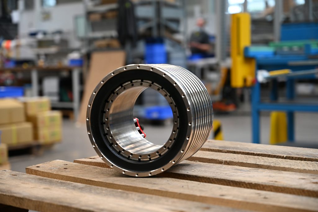 Bei der neuen Baureihe TM-2 von Hiwin handelt es sich um einbaufertige Motorelemente, bestehend aus Stator und Rotor. Durch die integrierten Kühlkanäle kann der Torquemotor mit einer Flüssigkeitskühlung betrieben werden. Dadurch wird keine zusätzliche Prozesswärme in die Maschine eingebracht und es können höhere Dauermomente erreicht werden. Die Torquemotoren basieren auf der TMRW-Baureihe. Sie zeichnen sich jedoch bei identischen Abmessungen durch bis zu 40 Prozent höhere Drehmomente sowie ein reduziertes Rastmoment aus.