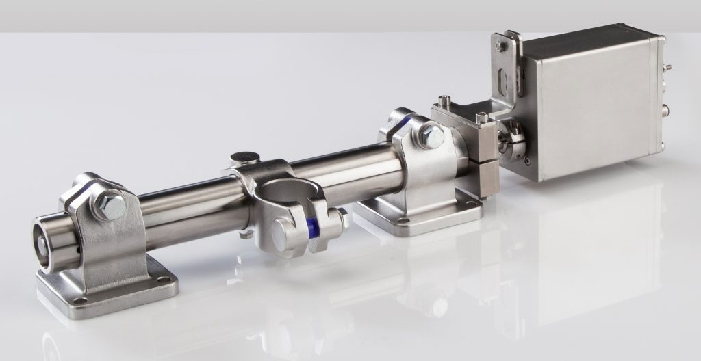 Die Firmen RK Rose+Krieger und Lenord+Bauer arbeiten seit einigen Jahren auf dem Gebiet der automatisierten Formatverstellungen zusammen und bieten aufeinander abgestimmte Lösungen aus Linearachsen und elektromotorischen Stellantrieben an. Da war es naheliegend auch korrosionsbeständige Lösungen für die Lebensmittelindustrie zu konzipieren. So werden beim jüngsten Projekt der beiden Unternehmen PowerDrive-Stellantriebe in der Edelstahlausführung von Lenord+Bauer mit den E-II-Einrohr-Lineareinheiten aus Edelstahl von RK Rose+Krieger zu korrosionsbeständigen und wash-down-fähigen Einheiten kombiniert.