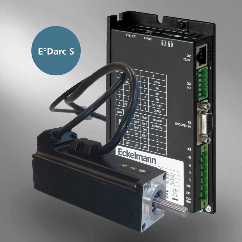 Die neuen E°Darc-Servo-Kits von Eckelmann für den Niederspannungsbereich lassen sich durch das CiA402-Geräteprofil als vollwertige geregelte CNC-Achse einsetzen. Betrieben mit einer Eingangsspannung von 24-70VDC liefern die E°Darc-S-Regler Nennströme von 5 bzw. 12A, wobei Spitzenströme bis 48A möglich sind. Die anschlussfertigen Servo-Kits umfassen neben dem kompakten Regler den passenden Motor in der Leistungsklasse 50 bis 400W (mit Nenndrehzahlen von 3.000U/min), wahlweise einen hochauflösenden Singleturn- oder Multiturngeber sowie Motor- und Geberkabel. Über eine serielle Schnittstelle und die Software E°Tools Drive lässt sich der Servoregler unkompliziert mit der einrichten und frei parametrieren – unabhängig von der verwendeten Steuerung. Die digitalen Ein- und Ausgänge sind ebenfalls frei konfigurierbar. Für die robusten Regler gibt es laut Hersteller vielseitige Einsatzmöglichkeiten.
