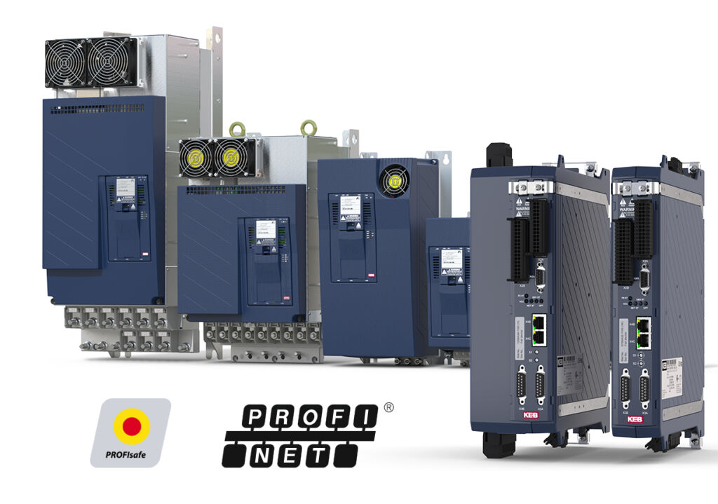 Die Drive Controller Combivert F6 und Servo Drives S6 von KEB Automation bieten integrierte Sicherheitsfunktionen direkt im Antrieb. In der Gerätevariante Applikation sind Ethernet-basierte Bussysteme per Software umschaltbar und ermöglichen so eine flexible Feldbusanbindung an die überlagerte Steuerungsebene beispielsweise via Profinet. In den Geräten wurde nun die Kommunikation über das sichere Feldbusprotokoll Profisafe integriert und zertifiziert. In der Anwendung kann so der Verdrahtungsaufwand reduziert werden. Die Einbindung von Antrieben mit integrierter Sicherheit in das Siemens TIA Portal Profinet-Netzwerk erfolgt mithilfe der vorab auf Konformität geprüften GSD-Dateien. Darauf aufbauend wird die sichere Feldbuskommunikation zwischen verschiedenen F-Devices (Sicherheitsgeräten) realisiert. Bei den Drive Controllern Combivert F6 und S6 Applikation (mit Sicherheitsmodul Typ 3) können die entsprechenden geberbehafteten Sicherheitsfunktionen über die Konfiguration angewählt und genutzt werden. Die Gerätereihen decken einen großen Leistungsbereich von 0,75 bis 450kW ab und können für den Betrieb von unterschiedlichen Motorentechnologien eingesetzt werden.