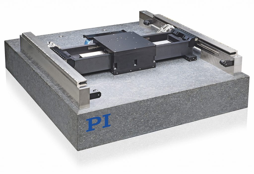 Ein Beispiel dafür liefert ein luftgelagerter, zweiachsiger Lineartisch, der für die Wafer-Inspektion entwickelt wurde. Über einen Stellweg von bis zu 500x1000mm arbeitet er mit einer Geradheit/Ebenheit von ±10nm pro 10mm Stellweg. Zur exakten rechtwinkligen Ausrichtung regelt der Motion Controller das Gieren der Achsen über die X-Achse. Schwingungen werden über den Profile-Shaping-Algorithmus ebenfalls vom Controller aktiv gedämpft. Der von magnetischen Direktantrieben bewegte, luftgelagerte Planartisch ist modular aufgebaut, d.h. die Hübe sind skalierbar und je nach erforderlicher Positioniergenauigkeit lassen sich unterschiedliche Encoder einbauen. Der Tisch trägt Lasten bis 24,5kg. Dabei sorgt die verschleißfreie Luftlagerung nicht nur für extrem ebene Bewegungen, sondern auch für eine lange Lebensdauer. Über die Ethercat-Schnittstelle des Controllers lässt sich das Positioniersystem zudem einfach in die übergeordnete Steuerungsumgebung integrieren.