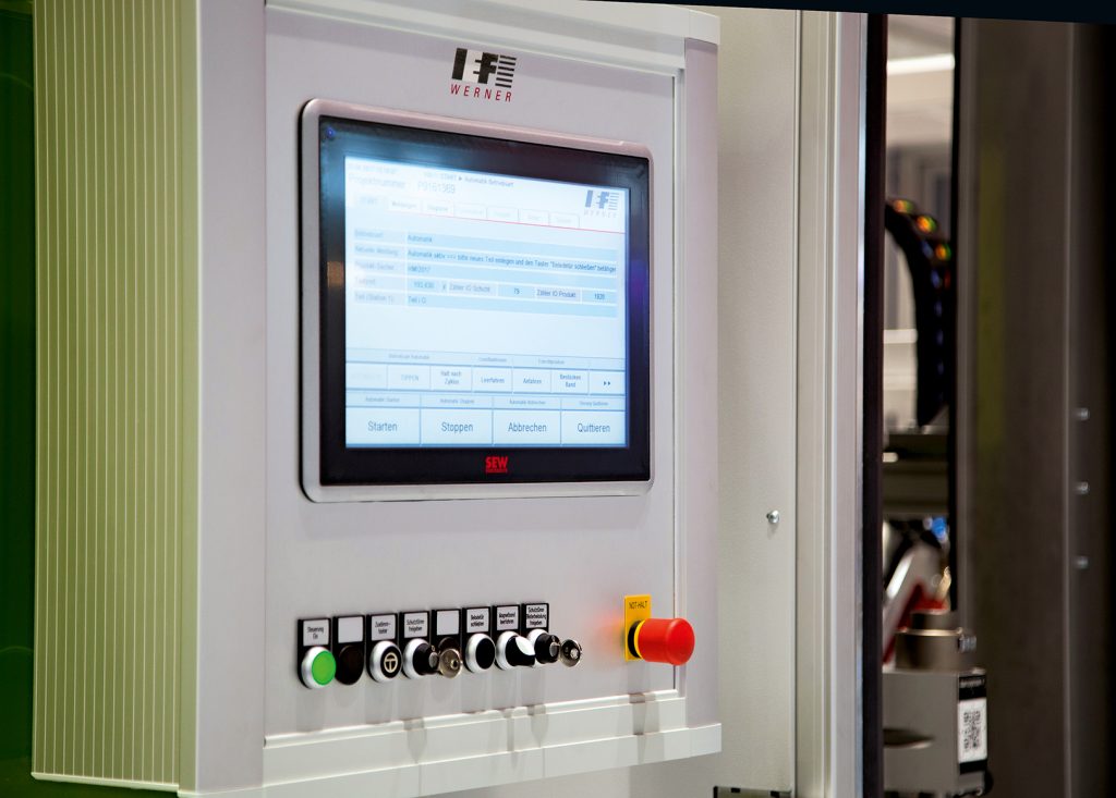 Für eine Vereinfachung und Beschleunigung der Inbetriebnahme der Lösungen aus dem Automatisierungsbaukasten Movi-C wurde das intuitive Engineeringtool Movisuite entwickelt. Antriebslösungen in Maschinen können sehr vielfältig sein – von der einfachen Drehzahlvorgabe über Positionierung und synchronisierte Achsbewegungen bis zur Robotik, wo mehrere Achsen einer genau definierten Raumkurve folgen müssen. Die Motion-Control-Software Movikit MultiMotion hilft dem Anwender, diese Vielfalt zu beherrschen und mit effizientem Engineering schnell ans Ziel zu kommen. Das bedeutet so viel wie möglich Parametrierung und so wenig wie nötig Programmierung sowie Unterstützung durch grafische Oberflächen für die geführte Parametrierung der Standardfunktionen und eine komfortable Diagnose. Die Serie der Digitalen Operator Panel DOP11C von SEW-Eurodrive ermöglicht eine realitätsnahe und leistungsstarke Maschinenvisualisierung. In der Rotorbestückungsanlage kommen die Panel DOP11C 150 für die Bedienung und DOP11C 100 zur Justierung der Klebeeinheit zum Einsatz.