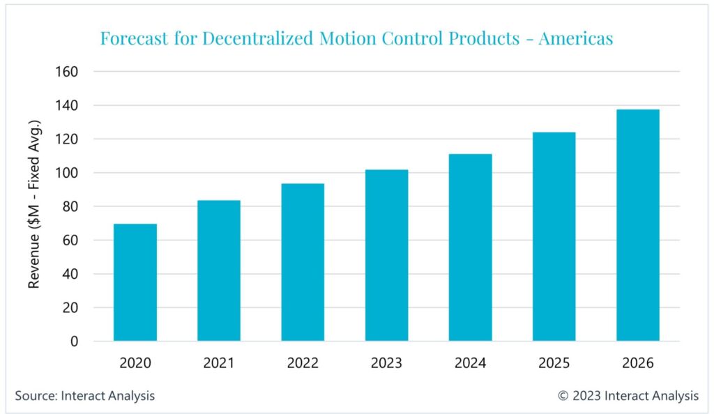 Laut Tim Dawson, Senior Research Director und Leiter des Bereichs Motion Control bei Interact Analysis, hat der Markt für dezentrale Antriebe 2021 einen Wert von 381 Millionen US-Dollar erreicht und soll bis 2026 auf fast 700 Millionen US-Dollar anwachsen. Das künftige Wachstum auf dem Markt für dezentrale Antriebstechnik sei in Branchen wie der Verpackungsindustrie, der Intralogistik und der Lebensmittel- und Getränkeverarbeitung besonders stark. Es handelt sich dabei um Branchen, in denen komplexere Maschinen mit moderner Antriebstechnik und vielen Servoachsen eingesetzt werden und daher ein modulares Konzept vorteilhaft ist. „Man sollte bedenken, dass insbesondere die Verpackungsbranche eine Wachstumsbranche ist, in der Unternehmen ihre Konzepte häufiger überarbeiten als in anderen Branchen, sodass sich Trends und Innovationen schneller durchsetzen“, so Dawson. Er verweist hierbei auch auf den zunehmenden Bedarf an Niederspannungsprodukten (<100V) in bestimmten Branchen, die einen sicheren Spannungsbereich erfordern, einschließlich der Verpackungsindustrie, der Intralogistik, Medizin- und Laborgeräte, Halbleiter- und Elektronikfertigung sowie kollaborative und mobile Roboter.