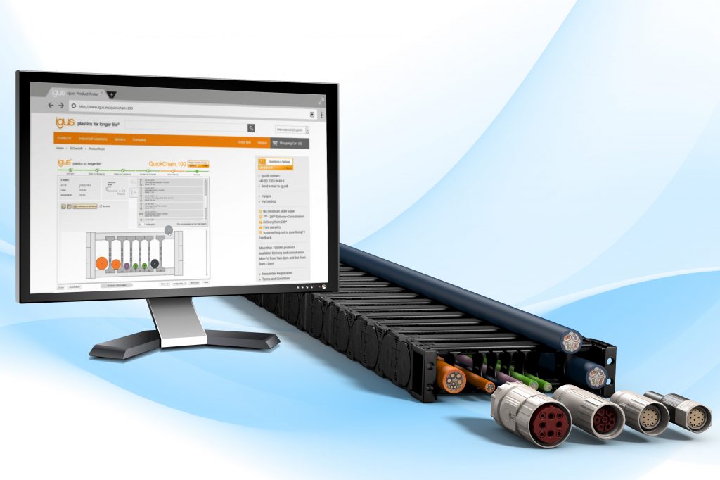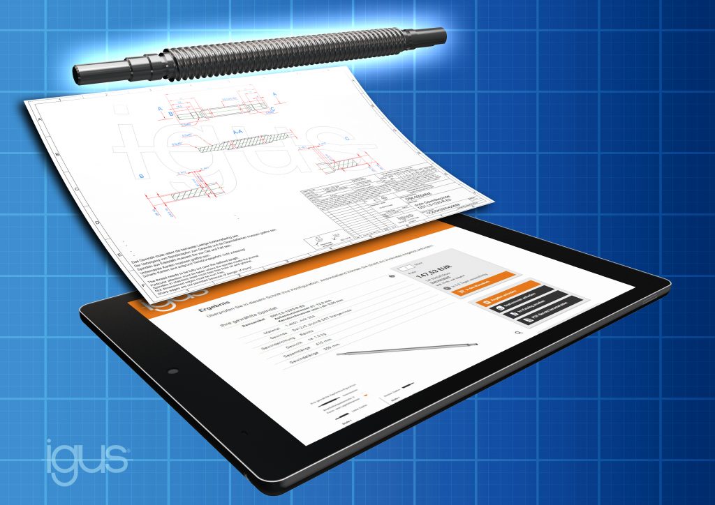 Während online einzukaufen für den Endverbraucher selbstverständlich ist, gehen auch Unternehmen vermehrt diesen Weg. Igus betreibt schon seit Jahren einen Online-Shop, in dem der Kunde ab Stückzahl 1 kaufen kann. Je nach Verfügbarkeit sind die Produkte bereits ab 24 Stunden lieferbar. Vom Gleitlager über den Lineartisch bis hin zum Energiekettensystem – auf der Website des Anbieters kann der Nutzer zusätzlich die Lebensdauer der Komponenten berechnen oder auch individuelle Lösungen konfigurieren und in Auftrag geben. Dafür sind weder ein CAD-Programm noch Kenntnisse im technischen Zeichen nötig. Der Prozess von der Konfiguration bis zur Produktion erfolgt voll automatisch. Eine manuelle technische Zeichnung, deren Erstellung Stunden oder Tage dauert, entfällt.