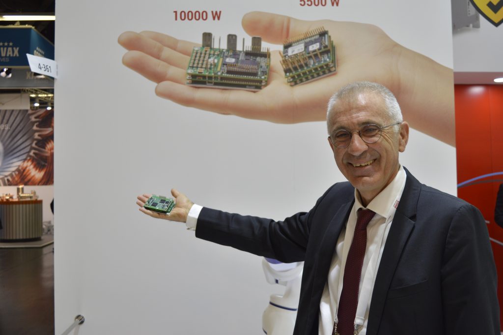 In die gleiche Richtung stößt Elmo nun mit dem Double Gold Twitter vor. „Eine Vielzahl an Antriebsapplikationen, z.B. in der Robotik, verlangen nach immer mehr Motion-Power“, begründet Haim Monhait, CEO von Elmo, diesen nächsten Schritt. „Deswegen haben wir unsere Produktfamilie entsprechend erweitert.“ Auch der neue Regler ist hocheffizient, deckt mit 10kW aber den doppelten Leistungsbereich ab – und das bei einem Gewicht von nur 33g. „Das war aus technologischer Sicht vor einigen Jahren noch undenkbar“, so Monhait weiter. „Man hätte den Platz alleine für den Controller gebraucht.“ Jetzt sind alle erforderlichen Elemente im Regler integriert. Damit ist der Double Gold Twitter für 160/80V bzw. 140/100V ausgelegt und wie sein kleiner Bruder sowohl für Ethercat als auch CANopen erhältlich.