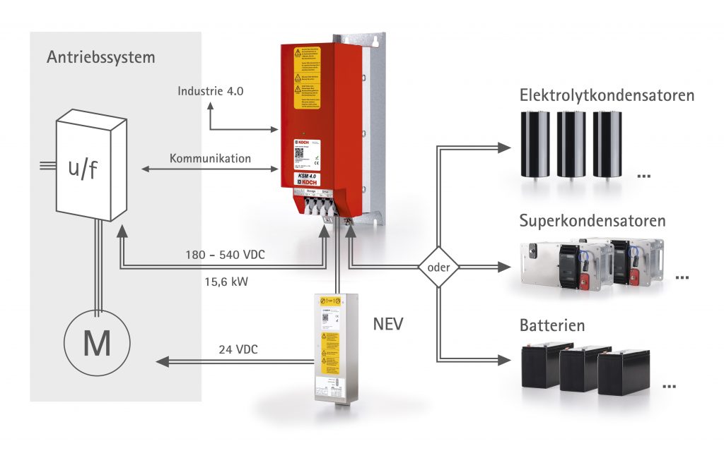 Der dynamische Speichermanager KSM 4.0 von Michael Koch ermöglicht es, Gleichstromkreise von 18 bis 540VDC Spannungsniveau auszugleichen, also überschüssige Energie zwischen zu speichern und fehlende Energie zu ersetzen. Dabei zeichnet sich der Manager durch die Fähigkeit aus, die verschiedenen Speichermedien Elektrolytkondensatoren, Doppelschichtkondensatoren sowie Batterien zu beherrschen, und bringt somit für eine breite Bandbreite von Anwendungen Vorteile.