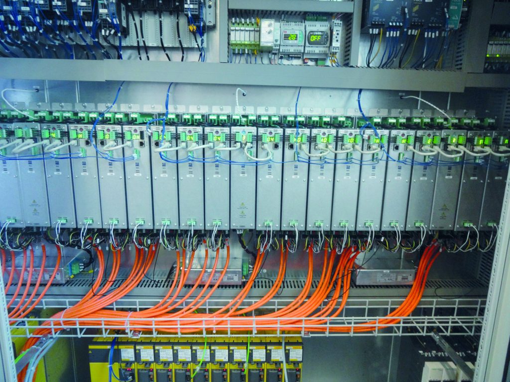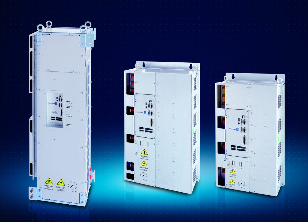 Zu den Zwei-Level-PWM-Umrichtern für Multiachsanwendungen zählen zum Beispiel die SD2-Varianten. Sie unterscheiden sich von den vorab beschriebenen Umrichtern dadurch, dass mehrere Endstufen mittels zentralem Netzteil versorgt werden. Die Zielsetzung ist hierbei eine Reduzierung des Bauvolumens sowie des Verdrahtungsaufwands bei Anwendungen mit vielen Bearbeitungsspindeln. Ein weiterer Aspekt ist die Erhöhung der Energieeffizienz, da bei Mehrachsanwendungen oftmals die Bearbeitungszyklen asynchron erfolgen. Über den gemeinsamen DC-Zwischenkreis lässt sich die Bremsenergie der einen Spindel zur Beschleunigung einer anderen Spindel nutzen. Einsatzfelder für diese Umrichter sind etwa Rundtaktmaschinen im Bereich der Uhrenindustrie oder MehrachsInnenrundschleifmaschinen.
