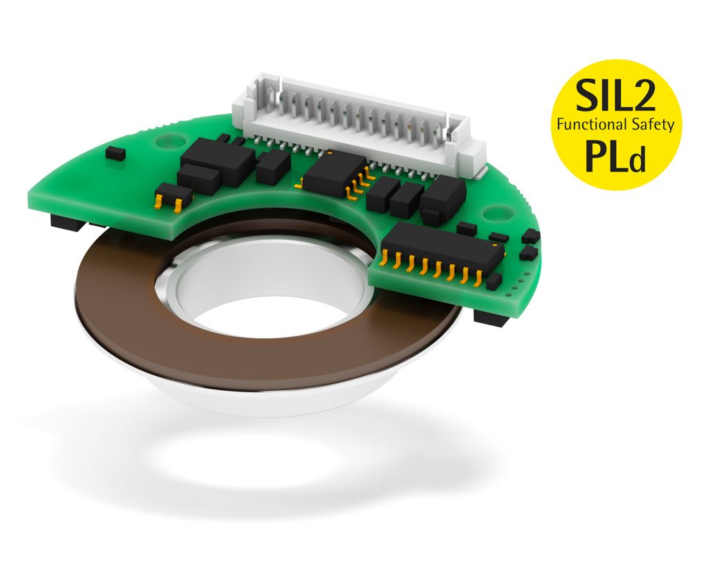Der lagerlose Encoder SMAR mit einer Off-Axis-Hallerfassung von Lika Electronic eignet sich für den Einbau in Sicherheitssysteme bis SIL2 und PLd/Kat3. Der Encoder arbeitet redundant und verfügt über zwei voneinander unabhängige Systeme, die den axial magnetisierten Magnetring MRA mit einem festgelegten Winkelversatz abtasten. Alle Versorgungs- und Schnittstellenkreise sind zweifach ausgelegt und arbeiten getrennt voneinander. Der Geber erreicht laut Anbieter eine Hardware-Fehlertoleranz von eins. Die bis zu 25mm große Hohlwelle sowie die Verfügbarkeit des Magnetringes mit und ohne Adapterflansch sollen dem Konstrukteur Flexibilität bei der Integration des Systems geben. Der Encoder ist sowohl als inkrementelle als auch als absolute Version verfügbar. Als Feedback für BLDC-Motoren stehen bei der inkrementellen Version die Signale AB0/AB0 sowie die Kommutierungssignale UVW/UVW zur Verfügung. Für die absolute Version mit 15 bis 19Bit-Auflösung im Singleturn und einem elektronischen Multiturn (65.536 Umdrehungen), sind die Schnittstellen SSI, BiSS und SPI verfügbar. Die absoluten Positionsdaten werden als Geschwindigkeitsfeedback durch die inkrementellen Signale AB0, /AB0 TTL/RS422 ergänzt.