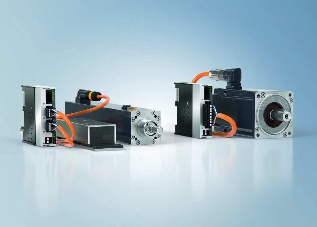 Die Ethercat-Klemmen ELM72xx kommen im Bereich der kompakten Antriebstechnik von Beckhoff zum Einsatz. Jetzt lassen sich in diesem Formfaktor nicht nur rotatorische Bewegungen – in Verbindung mit den Servomotoren AM8100 – realisieren, sondern mit den Elektrozylindern AA3100 und den Linearmotoren AL8100 auch translatorische Bewegungen. Die Klemmen dienen als vollwertige Servoverstärker und verfügen über ein robustes Metallgehäuse und mit bis zu 16A Ausgangsstrom bei 48VDC-Versorgungsspannung. Zum Funktionsbereich zählen das komfortable Stecker-Frontend, ein integriertes Absolutwert-Interface, die One Cable Technology sowie STO/SS1 und TwinSafe Logic.