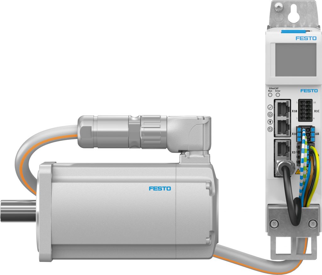 Mit einem Antriebssystem aus Antriebsregler CMMT-AS und Servomotor EMMT-AS will Festo durchgängige Antriebslösungen ermöglichen. Anwender sollen das komplette System in wenigen Minuten in Betrieb nehmen können. Der Servoregler ist konzipiert für dynamische Bewegungen in anspruchsvollen Anwendungen wie Montage- und Handhabungstechnik, Verpackungsmaschinen oder in der Elektronikindustrie. Über entsprechende Kommunikationsschnittstellen lässt er sich lückenlos in Steuerungsnetze einbinden – inklusive spezifischer Funktionsbausteine, z.B. von Siemens, Rockwell oder Beckhoff. Die Auto-Tuning-Funktion unterstützt die Inbetriebnahme rotativer und linearer Bewegungen. Der Anschluss des Motors über Einkabeltechnik reduziert den Installationsaufwand und spart Platz. Technisch zeichnet er sich durch ein niedriges Rastmoment aus. Eine schnelle Inbetriebnahme ermöglicht zudem das integrierte elektronische Typenschild. Die kostenlose Software Automation Suite vereint Parametrierung, Programmierung und Wartung elektrischer Automatisierungskomponenten in einem Programm. In nur wenigen intuitiven Schritten ermöglicht sie die Inbetriebnahme des gesamten Antriebspakets von der Mechanik bis hin zur Steuerung.