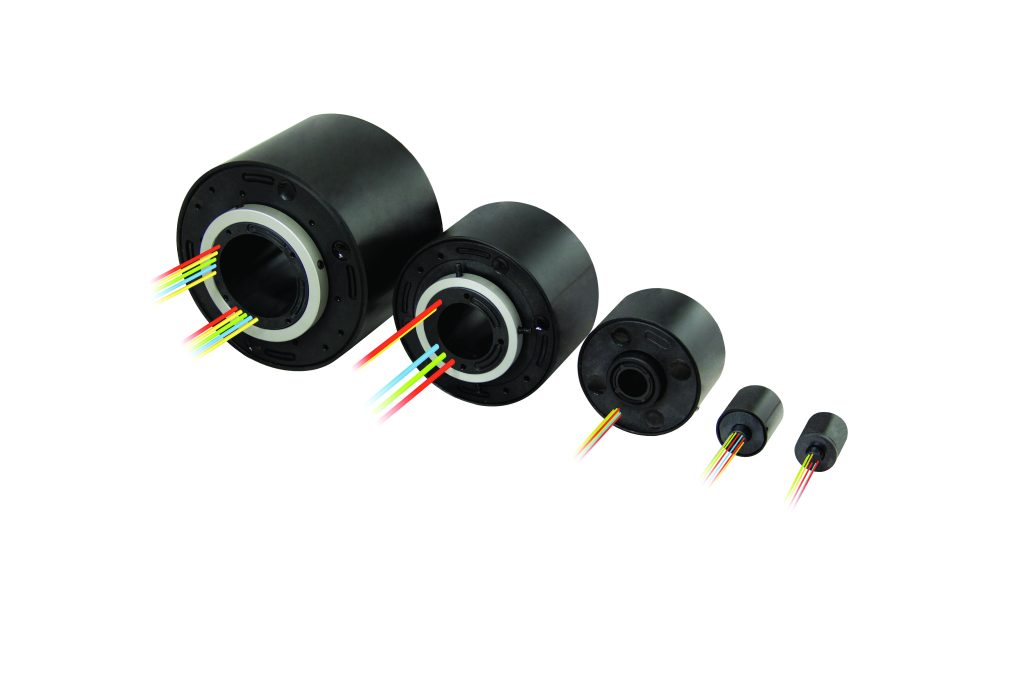 Die Servotecnica-Schleifringe der SVTS-C-Serie mit Hohlwellen von 3 bis 100mm Durchmesser sind mit ihren 13 Modellreihen und zahlreichen Baugrößen vielfach in Converting-, Verpackungs-, CNC- und Pharma-Maschinen im Einsatz. Sie können neben der Führung von elektrischen Signalen und Leistung auch mit Feldbussen und fluidischen Leitungen ausgestattet werden. Ausgelegt sind die robusten Komponenten im Hartplastikgehäuse aus ABS und mit Kugellagern aus Stahl auf eine Lebensdauer von 10 hoch 8 Umdrehungen.