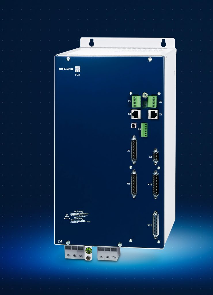 Der FC2 von Sieb & Meyer ist ein Frequenzumrichter mit geregeltem Zwischenkreis und Puls-Amplituden-Modulation (PAM), der den Betrieb von Asynchronspindeln mit Drehzahlen von bis zu 500.0001/min und einem Ausgangsstrom bis 33,6A bei 220VAC ermöglicht. Letztere werden z.B. in Leiterplattenbohrmaschinen benötigt. Dabei ist es möglich, mehrere Spindeln parallel mit einem Umrichter zu betreiben. Weitere Merkmale dieses Umrichters sind die Kommunikation mittels Ethercat, eine geringe Spannungsbelastung der Motorisolation und die einfache Parametrierung mittels U/f-Kennlinie. Anwender profitieren zudem von einer geringen Motorerwärmung und der dynamischen Drehzahlreglung. Mittels Parameterumschaltung/Spindelanwahl werden die Umrichterparameter automatisch in Abhängigkeit der angewählten Spindeln angepasst. Der Umrichter kann bis zu acht Drehzahl- und Temperatursensoren auswerten, um externe Komponenten zu reduzieren.