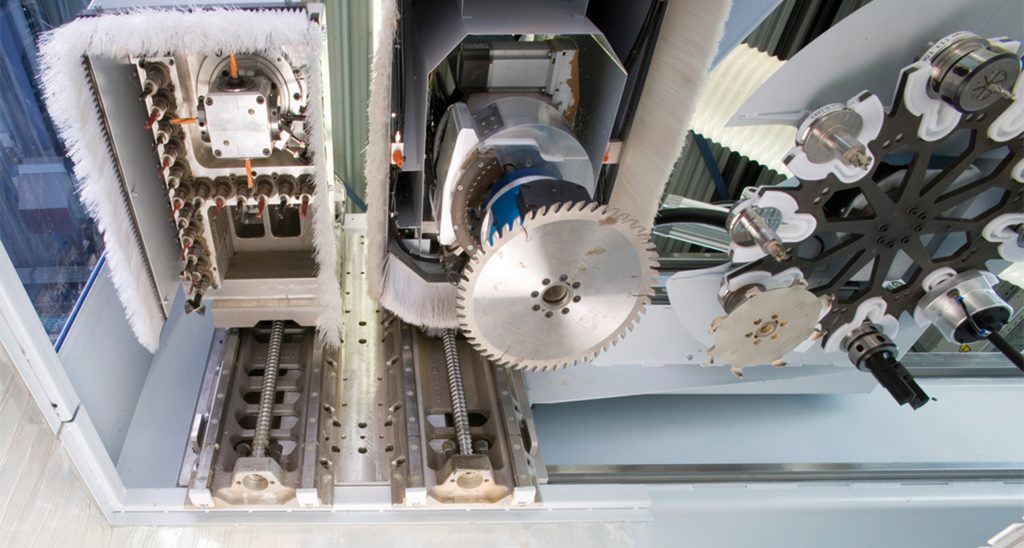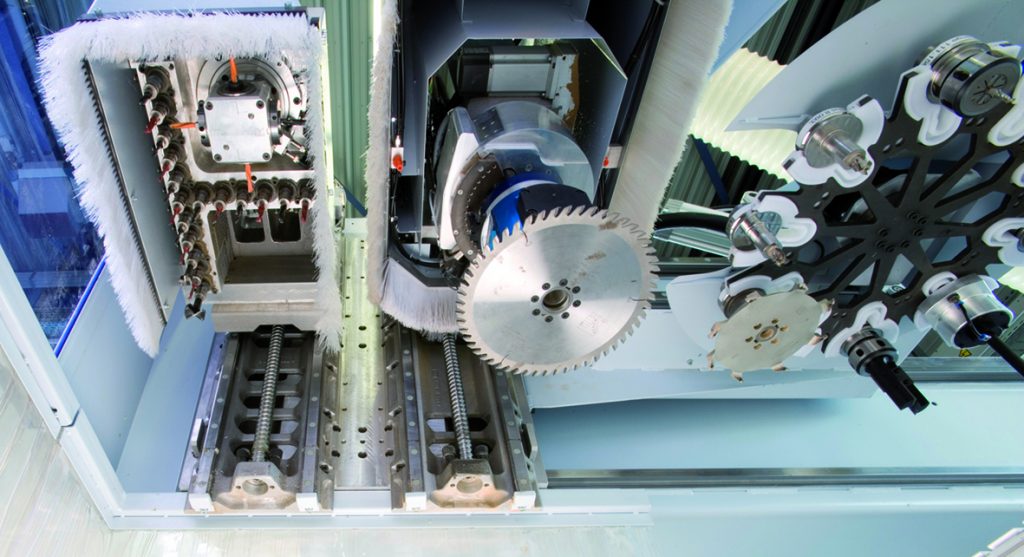 Ein weiteres Highlight ist die achtfache Verwendung jeder Sicherheitsfunktion. So können im Safety-Modul etwa bei der SLS-Funktion acht verschiedene Drehzahlwerte abgelegt werden, die über sichere Eingänge oder über FSoE angewählt werden können. Ebenso sind mehrere Sicherheitsfunktionen mit nur einem Eingang kombinierbar. Soll z.B. die SLS-Funktion mit einer sicheren Drehrichtung verknüpft werden, so kann dies komfortabel parametriert werden. Als Reaktion auf eine Überdrehzahl bei der SLS-Überwachung kann ein direktes Aktivieren von STO festgelegt werden. Alternativ kann mit einer Fehlerrampe heruntergefahren und dies mit der Funktion SS1 überwacht werden. Darüber hinaus bietet KEB die Möglichkeit, sowohl den Fräs- als auch den Bohrantrieb mit nur einem Drive Controller vom Typ Combivert F6/S6 in der Applikation zu betreiben. Der Sicherheitsteil wird dabei geberlos überwacht. Die jeweiligen Motoren können trotzdem mit Geberrückführung betrieben werden. Diese beiden Arten schließen sich in der Pro-Variante nicht aus. Neben dem Wechsel zwischen verschiedenen Motoren ist es außerdem möglich, die sicher zu überwachenden Grenzen pro Motor zwischen verschiedenen Limits umzuschalten, z.B. im Automatik- oder Einrichtbetrieb.
