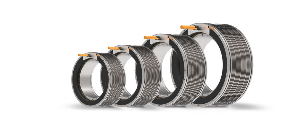 Die gehäuselosen Servomotoren der Baureihe Cyber Kit Line Large von Wittenstein Cyber Motor sind für den direkten Einbau in OEM-Maschinen und speziell auf Anwendungen mit erhöhten Leistungsanforderungen ausgelegt. Dabei zeichnen sie sich durch Verschleiß- und Spielfreiheit sowie hohe Drehmomentdichte, Energieeffizienz und Robustheit aus. Das kompakte Motordesign ohne Gehäuse und Lagerung eröffnet in Verbindung mit den großen Hohlwellendurchmessern zahlreiche antriebstechnische Gestaltungsmöglichkeiten.
