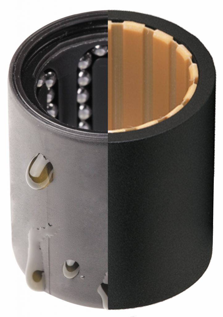Moderne Kunststoffe erlauben inzwischen die Herstellung von Polymergleitlagern, die gänzlich ohne Schmierung auskommen. Gleitelemente und Gegenlaufpartner weisen dabei gute Verschleiß- und Reibwerteigenschaften auf. Im Gegensatz zu Metalllagern, die korrosionsanfälllig sind und deshalb gerade im Außeneinsatz ständig geölt oder gefettet werden müssen, sind Kunststofflager vielseitiger verwendbar. Sie sind gegen Feuchtigkeit wie Hitze gleichermaßen widerstandsfähig. Kostspielige Stillstandszeiten durch Wartung oder Ausfall der Maschinen entfallen. Exemplarisch kann der technische Vorteil der Polymergleitlager (auch Gleitbuchsen genannt) gegenüber den Kugellagern (Kugelbuchsen) im Bereich der Linear- und Antriebstechnik nachgewiesen werden. Durch die größere Kontaktfläche und geringere Flächenpressung können auch weichere Wellen- oder Achsenwerkstoffe (z.B. Aluminium oder Kohlefaser) eingesetzt werden, was unter anderem eine Gewichtsreduzierung ermöglicht. Weil kein mechanisches Abrollen harter Reibungspartner und keine Kollision der Wälzkörper erfolgt, erzeugt das Gleiten weniger Geräusche oder Vibrationen. Auch das Aneinanderreihen von Führungsschienen, um größere Hublängen zu ermöglichen, ist mit Lineargleitlagern weitaus einfacher, weil die entstehenden Nuten von Gleitelementen besser überfahren werden können als von Kugeln. Ein materialbedingter Wälzlager-Nachteil besteht in der Begrenzung der zulässigen Geschwindigkeiten und Beschleunigungen. Die Maximalwerte sind limitiert, gerade bei geringen Lasten. Polymere Gleitbuchsen können hingegen mit hohen Gleitgeschwindigkeiten und Beschleunigungen aufwarten und in vielen Anwendungen die Taktzahlen erhöhen. Der wichtigste Trumpf besteht aber in der höheren Lebensdauer, die sich über Tools berechnen lässt. In den letzten Jahren gab es auch große Fortschritte in puncto Präzision und Reibwerten.