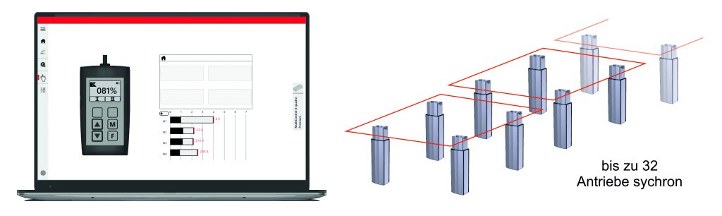 Mit der Steuerungssoftware RKX steht jetzt ein hilfreiches Bedien- und Service-Tool für die Hubsäulensteuerung MultiControl II zur Verfügung. Damit lassen sich individuelle Steuerungsprofile wie das Antriebsgruppenmanagement, die relative und absolute Positionierung oder die integrierte Kollisionserkennung schnell und einfach am PC konfigurieren. Auch die Inbetriebnahme und Ansteuerung der Hubsäulen kann damit über den PC bzw. Laptop erfolgen. Eine übersichtliche Gestaltung der Bedienoberfläche und Erklärvideos erleichtern die Anpassung. Ein großer Vorteil der Software: einmal angelegt können die Steuerungsprofile abgespeichert und jederzeit wieder abgerufen werden. Davon profitieren vor allem Kunden, die mehrere identische Systeme in Betrieb nehmen. Ein Knopfdruck genügt, um das einmal konfigurierte und gespeicherte Profil auf alle Systeme zu übertragen. Das spart nicht nur Zeit, sondern reduziert auch Fehlerquellen.