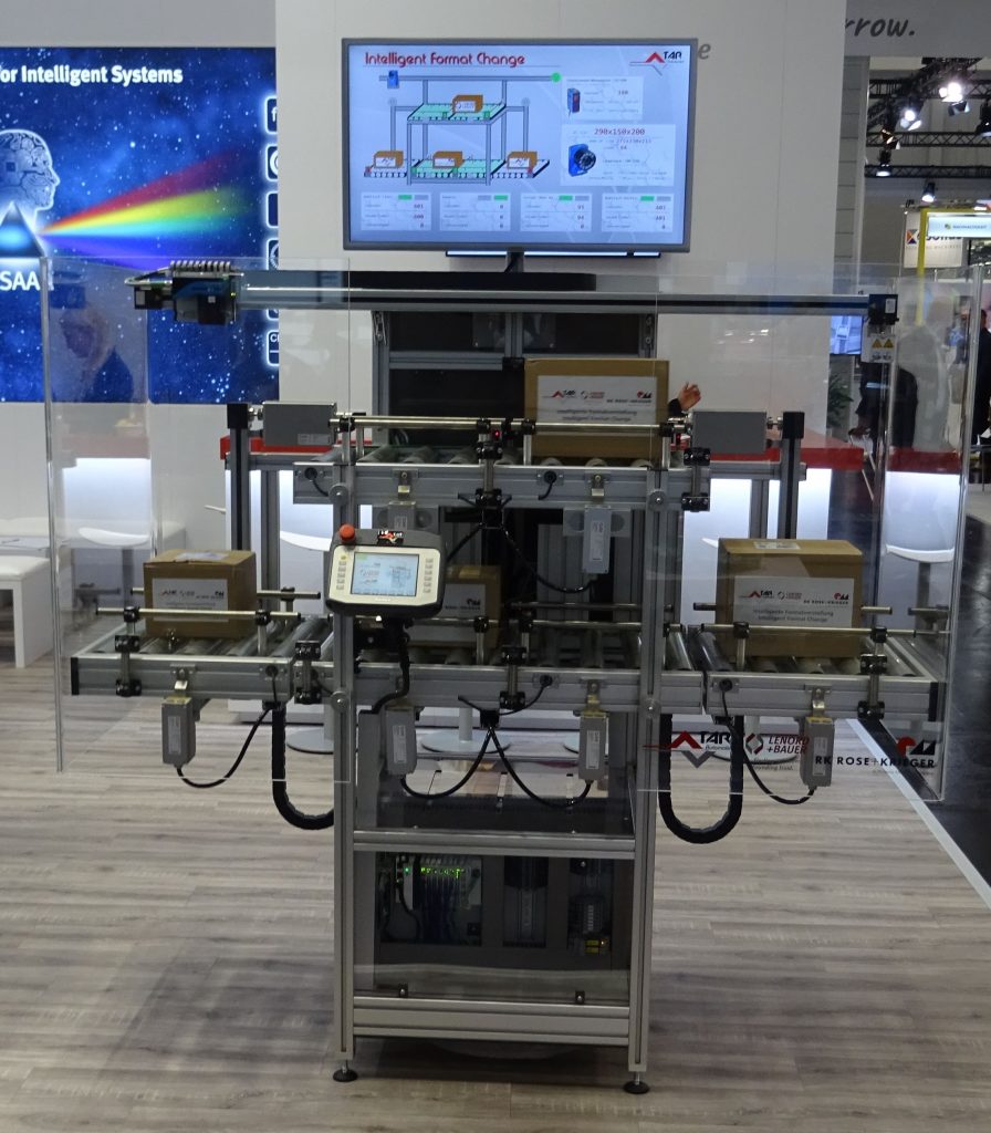 Die Unternehmen Lenord + Bauer, RK Rose+Krieger und TAR-Automation haben eine interaktive Anlagenvisualisierung entwickelt, die Umrüstvorgänge bei wiederkehrenden Rezepturen signifikant vereinfachen soll. Zum Objektbild mit Formaterkennung werden QR- bzw. Barcodes gelesen und wechselnde Formate erkannt. Zustellachsen werden daraufhin vollautomatisch auf die passenden Breiten eingestellt. Ein 2D-Code auf Kartons in diversen Formaten wird während des laufenden Verpackungsprozesses inline gescannt und überwacht. Die Stellantriebe aus dem Hause Lenord + Bauer justieren das Kamerasystem passend zu den zugeführten Umverpackungen. Das Bedienpersonal speichert die Einstellwerte bzw. die Maße der Kartons einmalig in einer Rezepturverwaltung ab. Sie ermöglicht es, dass die Maschine ohne manuelles Eingreifen Aufträge selbstständig abarbeitet. Mit dem modularen Konzept ist eine einfache Einbindung in gängige Feldbussysteme möglich.