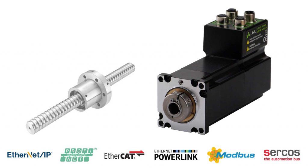 JVL kündigt zwei Lösungen für lineare Bewegungen an. Eine Variante ist ein elektrischer Aktuator im Kolbenstil, der sich als Ersatz für Pneumatikzylinder eignet. Die zweite Lösung verfügt über einen offenen Spindeltyp, der entweder mit einer Kunststoffmutter für den Low-Duty-Zyklus oder einer gewalzten Kugelschraube für schnelle und präzise Bewegungen erhältlich ist. Bei diesen neuen Mitgliedern der ServoStep-Reihe wurden Motorwelle und Lager durch eine Hohlwelle ersetzt, die in einem überdimensionierten zweireihigen Lager gelagert ist. Die Axialkraft beträgt bis zu 7.100N. Die Hohlwelle verfügt über eine Klemmung, die den direkten Anbau einer Spindel ermöglicht. Der Onboard-SMC66-Controller hat eine Auflösung von 409.600 Schritten pro Umdrehung, die den Motor bei jeder Geschwindigkeit in 0,01U/min-Intervallen ruhig laufen lässt. Motor, Encoder, Antriebselektronik, Steuerelektronik mit optional Ethernet oder CAN, sind in einer kompakten Einheit integriert. Protokolle wie Profinet, Ethernet/IP, Ethercat, Sercos, ModbusTCP/UDP und Powerlink sind ebenfalls verfügbar. Zu den weiteren Optionen gehören absolute Multiturn-Drehgeber und STO. Ebenfalls integriert sind acht I/O-Punkte, die individuell als digitaler Eingang oder Ausgang – oder Analogeingang – konfiguriert werden können.