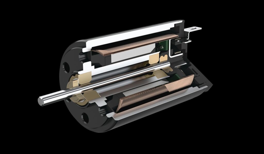 Im Exoskelett Japet.W liefern jetzt vier DC-Motoren mit Edelmetallkommutierung der Serie 1524…SR die Stützkraft zur Entlastung der Wirbelsäule. Die edelmetallkommutierten Gleichstrommotoren sind bei 15mm Durchmesser lediglich 24mm lang, bauen also sehr kompakt und benötigen nur wenig Einbauraum, was der beschriebenen Anwendung natürlich entgegenkommt. Sie liefern ein Dauerdrehmoment bis 2,8mNm bei Drehzahlen bis 4.500U/min. Die DC-Kleinstmotoren unterscheiden sich von herkömmlichen Ausführungen hauptsächlich durch den Rotor. Dieser ist nicht auf einen Eisenkern gewickelt, sondern besteht aus einer freitragenden, in Schrägwicklung hergestellten Kupferspule. Der leichte Rotor bietet mit seinem geringen Trägheitsmoment und rastmomentfreien Lauf, was wiederum der Dynamik zugutekommt.