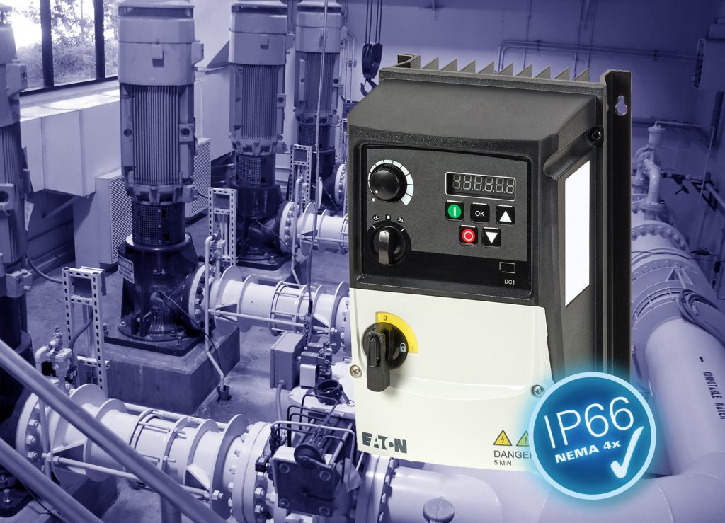 Eaton hat die Umrichterbaureihe DC1 in Schutzart IP66 überarbeitet. Ergänzt wurde eine weitere Baugröße, so dass nun vier Varianten bis 22kW bei 400V verfügbar sind. Gleichzeitig bietet das DC1-Portfolio nun ein Outdoor Rating, das eine hohe UV-Beständigkeit besitzt, so dass sie ohne Überdach im Außenbereich eingesetzt werden können. Mit 14 Basisparametern lassen sich die Frequenzumrichter schnell in Betrieb nehmen. Die Parametrierung kann dabei auch per Smartphone-App erfolgen. Alle Geräte verfügen zudem über CANopen- und Modbus-RTU-Schnittstelle. Der Umrichter steuert Asychron-, Permanentmagnet-, Synchronreluktanz- oder Brushless-DC-Motoren. Dabei stehen eine U/f-Steuerung oder die sensorlose Vektorregelung zur Verfügung.