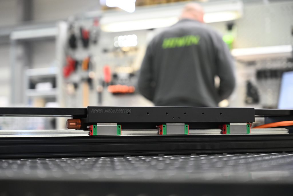 Hiwin bietet mit der LMSSA-Baureihe eine kosteneffektive Variante direkt angetriebener Linearmotorachsen an. Wie alle Linearmotorachsen des Herstellers soll sich auch die LMSSA-Linearmotorachse durch hohe Verfahrgeschwindigkeit und Positioniergenauigkeit auszeichnen, bei nahezu wartungsfreiem Betrieb. Durch den Einsatz eines flexiblen Baukasten-Systems und die Standardisierung der verfügbaren Optionen überzeugt die Achse laut Hersteller durch ihr Preis-Leistungs-Verhältnis. Die zehn Varianten der Aluminium-Linearachse sind in einer Profilbreiten von 185 sowie 206mm erhältlich und erreichen Wiederholgenauigkeit von ±0,001mm. Sie erreichen eine Beschleunigung von 70 bis 100m/s² bei einer Verfahrgeschwindigkeit von 5m/s. Ihr maximaler Hub wird von 2.400 bis. 2.700mm angegeben.