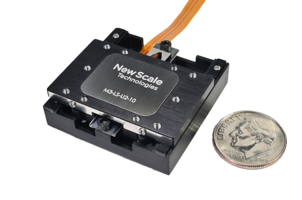 Das Lineartischmodell M3-LS-U2 von SI ist für Serienfertigung und hohe Lebensdauer augelegt. Wie auch das Vorgängermodul M3-LS trägt es dem Trend der Miniaturisierung und Vereinfachung von Automatisierungskomponenten Rechnung. Im Gegensatz zu herkömmlichen Verschiebetischen sind Elektronik und Sensorik komplett integriert. Der Tisch wird über SPI- oder I2C-Schnittstelle direkt vom Systemprozessor angesteuert. Er positioniert Lasten bis 40g mit einer Geschwindigkeit von 35mm/s über 10mm Stellweg. Die hohe Auflösung von 500nm bei absoluter Codierung wird durch sie integrierte Regelung erreicht. Erweiterungen in X-, Y- und/oder Z-Richtung sind möglich.