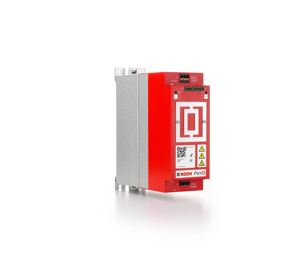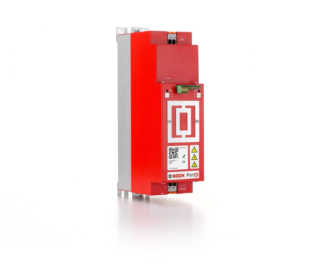 Eine wichtige Rolle in dieser Hinsicht übernimmt das kompakte MX-Modul, das Koch erstmals auf der SPS-Messe im vergangenen November präsentieren wollte, die ja leider kurzfristig abgesagt wurde. Das Modul wird direkt auf ein aktives Gerät der PXT-Familie aufgesteckt und durch die interne Kommunikation automatisch erkannt. Dann übernimmt es quasi die Masterrolle im Verbund der PXT Geräte und bringt durch smarte Vorsteuerung mehr Intelligenz in die Anwendung. Ergänzend müssen nur noch die mitgelieferten Strommesssensoren angeschlossen und der Maximalwert für den Netzstrom eingegeben werden. Schon ist sichergestellt, dass die für Lastspitzen der Maschine erforderliche Energie aus dem aktiven Energiemanagementsystem und nicht aus dem Stromnetz kommt. Bis 100A reicht der Mess- und damit Regelbereich. Viele Anwendungen mit geringerem Effektivstromwert können auf diese Weise unter die Nennstromgrenzen der Sicherungen zum Stromnetz, z.B. von 63 oder 32A gebracht werden.