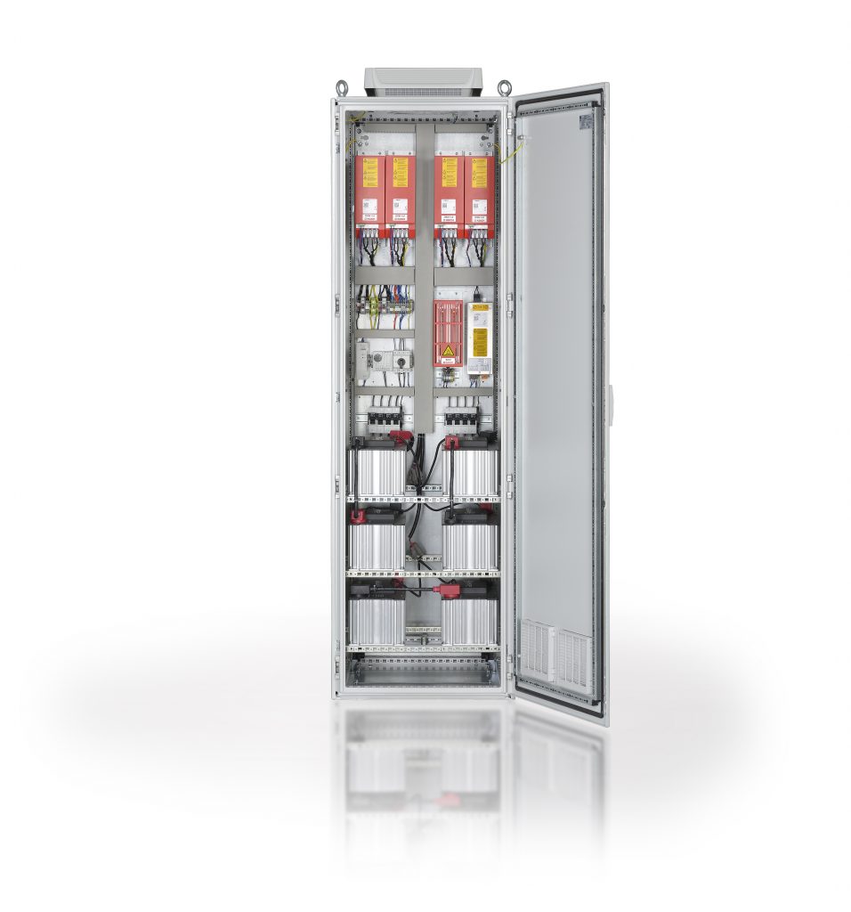Genau ein solches mit KTS bezeichnete Energiemanagementsystem der Michael Koch GmbH hält eine maximale Energie von einem Megajoule in den Superkondensatormodulen. Dafür passt der Verbund aus DDM 4.0 und dem sicheren Bremswiderstand B3H3.6100-1000 optimal. – Bild: WERBEKOCH GmbH