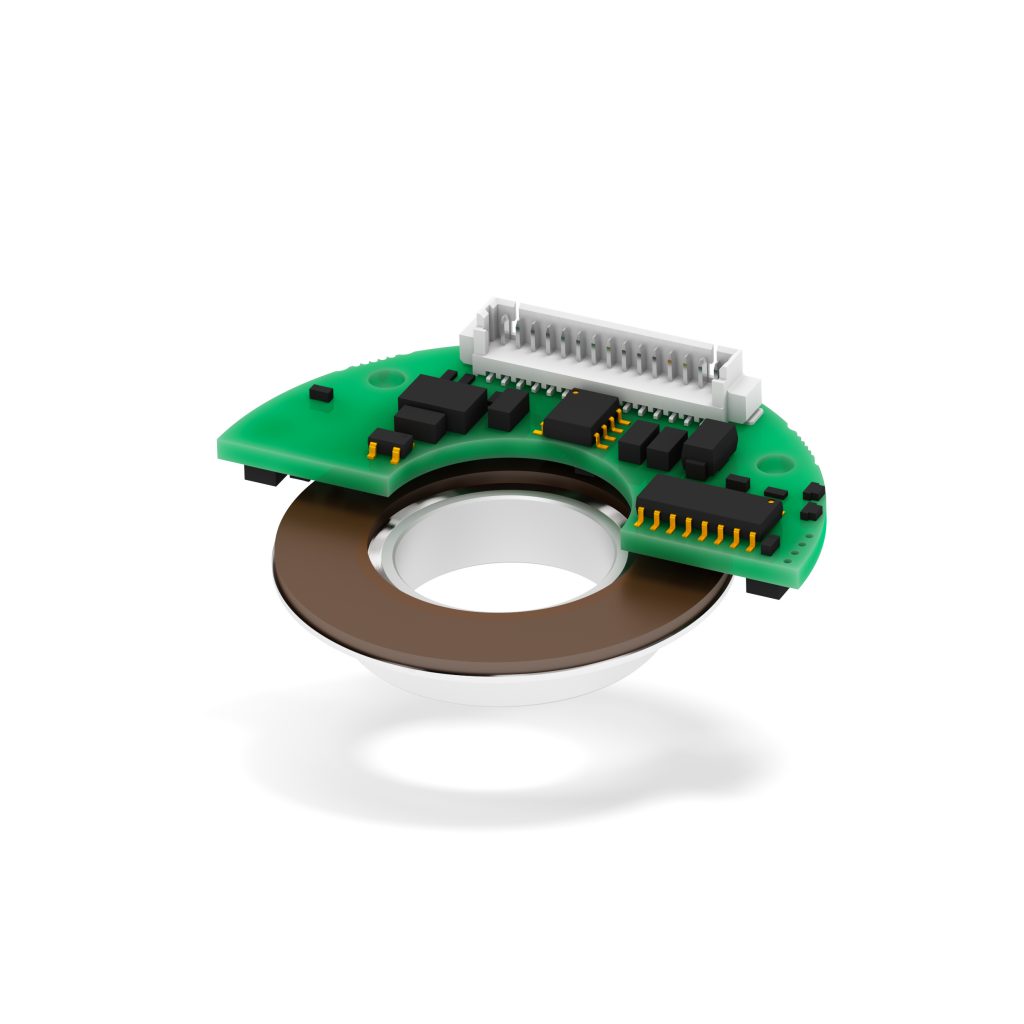 Mit dem Kit-Encoder SMAR1 stellt Lika ein lagerloses, modular aufgebautes Messsystem vor. Es besteht aus einer offenen Leiterplatte und dem Magnetring MRA mit axialer Magnetisierung. Lesekopf und Magnetring eignen sich für Wellendurchmesser bis 18mm und zeichnen sich durch eine sehr flache Bauweise mit nur 9mm Höhe aus. Zusammen mit dem geringen Gewicht ermöglicht das eine einfache Integration auch in platzkritischen Applikationen wie Roboterachsen, Hohlwellenmotoren oder Direktantrieben. Das Messsystem kann sowohl als inkrementelle, wie auch als absolute Version ausgeführt werden. Die inkrementelle Version liefert Signale mit einer Auflösung bis 65536 PPR. In der absoluten Version stehen Auflösungen von 15 bis 19Bit zur Verfügung, die über die Schnittstellen SSI, BiSS-C oder SPI ausgegeben werden können. Das System eignet sich für Betriebstemperaturen von -25 bis +100°C (optional bis +115°C).