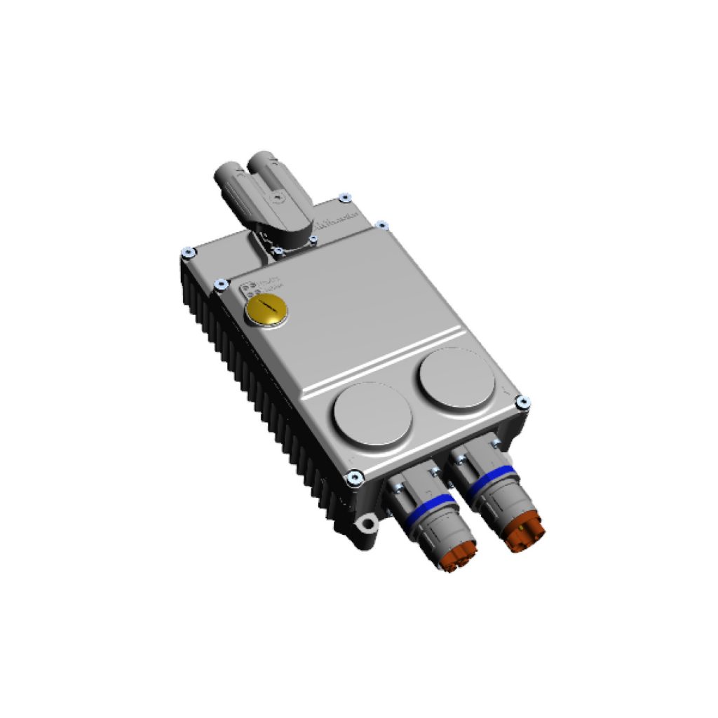 Das Daisy-Chain-Verfahren hat allerdings den Nachteil, dass es die Zahl der Steckverbinder erhöht – ein Eingang, ein Abgang. Während in Nord- und Mitteleuropa die verwendeten M23-Hybridsteckverbinder aufgrund ihrer Flexibilität in Montage und Wartung sehr beliebt sind, werden sie gerade in preissensitiven Märkten wie Südeuropa oder Asien eher skeptisch gesehen. Daher hat AMKmotion die Gehäuse so gestaltet, dass auch eine herkömmliche Verdrahtung mit Kabeleinführung und Anschlussklemmen möglich ist. „Bei der dezentralen Platzierung von Antrieben hat man manchmal weniger Platz als man vermuten möchte, stellt Andreas Böhringer klar. „Deshalb sind die neuen Wechselrichter so gestaltet, dass man seitlich und oben wahlweise gerade oder gewinkelt abgehen kann. Das bietet enorme Flexibilität.“ Mit den verfügbaren M23-Hybridsteckern in gerader oder gewinkelter, drehbarer Ausführung sind die Kabelabgangsrichtungen nahezu frei wählbar.
