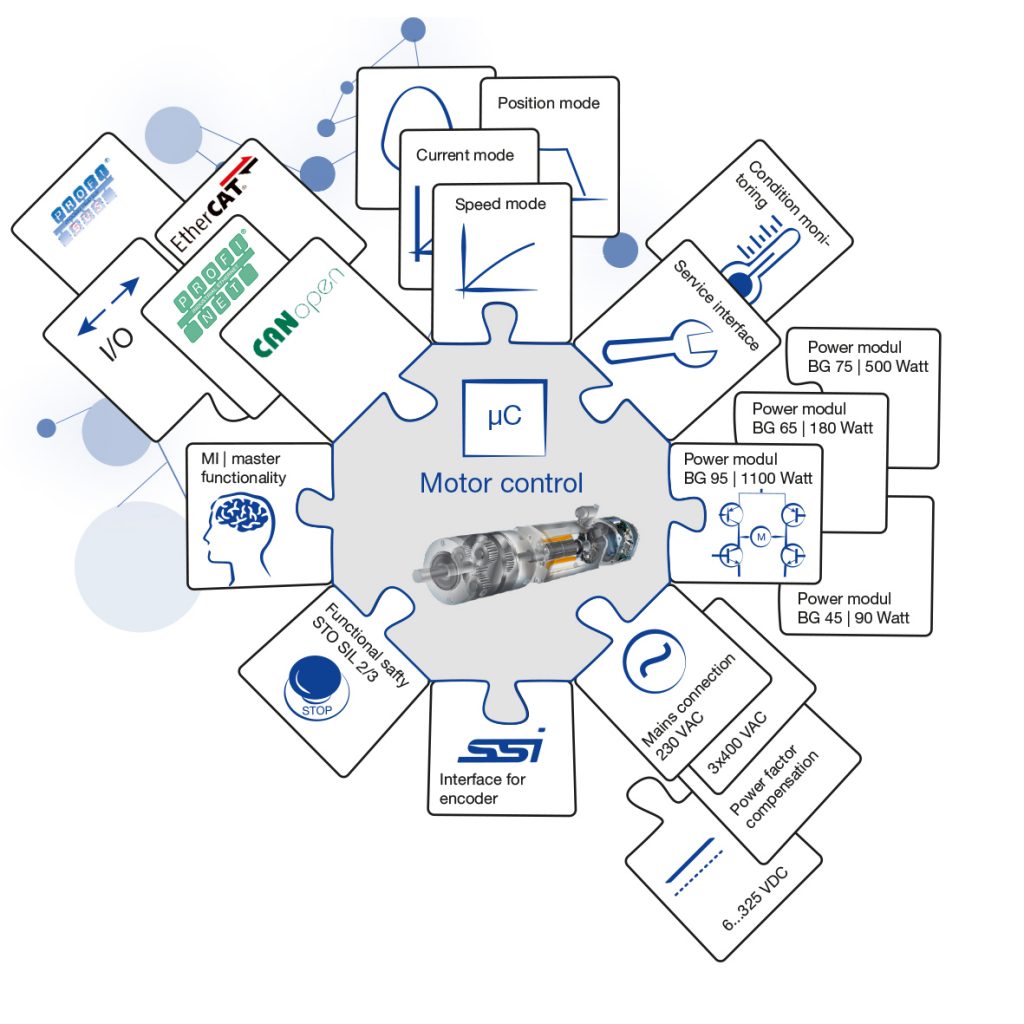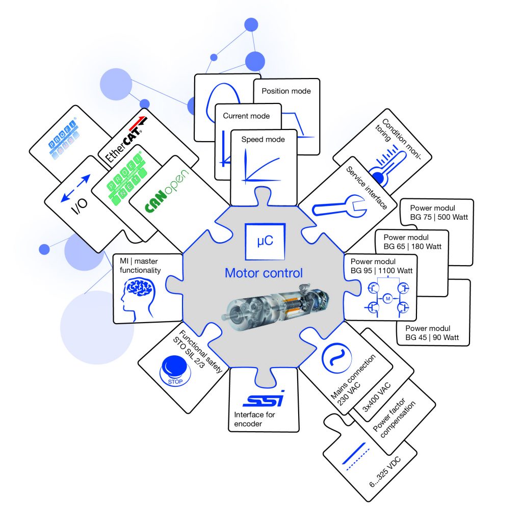 Dunkermotoren hat im Zuge der Umstellung auf die neue Plattform besonderen Wert auf Flexibilität gelegt. Sie ermöglicht, dass Motoren völlig unterschiedlich programmiert und jederzeit auf neue Bedürfnisse angepasst werden können. Ein angenehmer Nebeneffekt sind geringere Lagerhaltungskosten. Servicetechniker müssen weniger Material bereithalten, weil die Motoren keine starre Funktionszuordnung haben, sondern erst bei der Inbetriebnahme eine Funktion zugewiesen bekommen. Ein Motor kann für unterschiedliche Anwendungen eingestellt werden. Die Flexibilität beruht zum einen auf der modular aufgebauten Firmware, die Erweiterungen problemlos zulässt. Zum anderen wurden zwei neue Features eingeführt: Quickstart Plus und die freie Programmierung von MotionApps. Damit können einfache Anpassungen der Parameter bis hin zu autonom ablaufenden Programmen mit SPS-Funktionen umgesetzt werden.