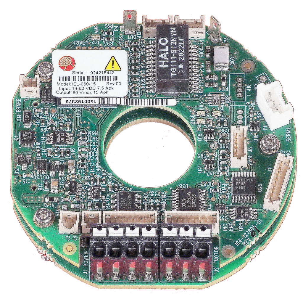 Maccon lanciert den Motor-Controller IEL, speziell für die Anwendung in Robotergelenken. Der kreisförmige Controller hat eine Innenbohrung, die die Durchführung von Kabeln bzw. von Versorgungsschläuche ermöglicht. Er zeichnet sich durch hohe Performance und einer kompakten Bauweise mit einem Außendurchmesser von 64mm aus. Des Weiteren hat der IEL eine Innenbohrung von 20mm damit elektrische Kabel bzw. Versorgungsschläuche problemlos durchgeführt werden können. Die kompakte Baugröße ist durch die Doppeldecker-Bauweise (zwei kreisförmige Platinen) möglich.