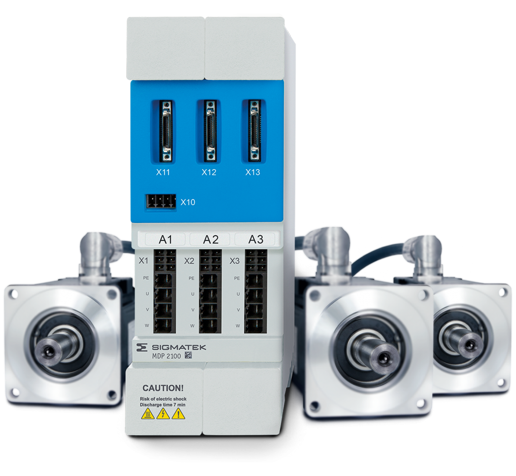 Die modulare Multiachs-Servosystem-Serie Dias Drive 2000 von Sigmatek kann ein- oder dreiphasig mit 230 bis 480VAC betrieben werden. Neben ein bis drei Achsen sind Versorgung, Netzfilter, Bremswiderstand sowie Zwischenkreis integriert und das auf 75x240x219mm in Baugröße 1. In dieser Größe schafft das Servosystem eine Leistung von 4kW (3x5A Nenn- bzw. 3x15A Spitzenstrom) und in Baugröße 2 bis zu 9kW (3x10A bzw. 3x30A). Der Überlastfaktor liegt bei bis zu 300% und die Reglerzykluszeiten bei 62,5µs. Neben STO und SS1 verfügt die Serie standardmäßig über die Funktionen SOS, SBC sowie SLS und ermöglicht Anwendungen bis SIL3/PLe/Kat4. Im Standard kommt die digitale Motorfeedback-Schnittstelle Hiperface DSL zum Einsatz.