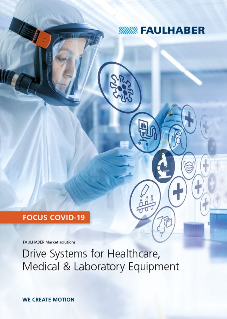 Das Corona-Virus hat die Welt nach wie vor fest im Griff. Um die Ausbreitung der Pandemie zu verlangsamen, werden weltweit zum Teil sehr drastische Maßnahmen ergriffen. Gleichzeitig werden Labor- und Analysekapazitäten auf- und ausgebaut, um Tests schneller auswerten zu können und an Gegenmitteln oder Impfstoffen zu forschen. Aber auch der Schutz der Menschen muss lückenlos sein und ebenso zuverlässig funktionieren wie die Beatmungsgeräte für erkrankte Patienten. Die neue Publikation ‚Antriebssysteme für Gesundheitsversorgung, Medizin & Laborgeräte‘ von Faulhaber zeigt, welche Antriebe sich für Medizintechnikanwendungen aus den Bereichen Beatmungssysteme, Personenschutz (PAPR), Laborautomation, Point of Care (POC) Analyse sowie Infrarotthermographie besonders eignen. Die Publikation kann in elektronischer Form (PDF) kostenlos auf der Faulhaber-Internetseite heruntergeladen werden.
