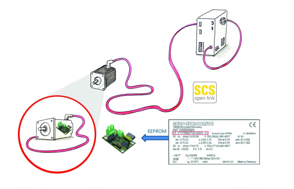 SCS open link wurde für die bidirektionale Datenübertragung zwischen Motor und Antriebsstrang konzipiert. Die Schnittstelle ermöglicht eine reibungslose Interoperabilität von Geräten verschiedener Hersteller. Mit einem ganz ähnlichen Thema beschäftigte sich seit 2017 auch das Forschungsprojekt ‚Der Motor als cyber-physisches System – elektronisches Typenschild‘ der TH Köln. Prof. Dr. Jens Onno Krah und seine Mitarbeiter vom Institut für Automatisierungstechnik konzipierten ein offenes digitales Kommunikationsverfahren für elektronische Motortypenschilder, das von Frequenzumrichtern verschiedenster Hersteller genutzt werden kann. Auf diese Weise können Umrichter jeden angeschlossenen Motor automatisch erkennen und mit den passenden Parametern konfigurieren – der Motor arbeitet dann mit dem optimalen Wirkungsgrad. Bisher erkennen Frequenzumrichter nur die Motoren automatisch, die mit einem Encoder ausgestattet sind und von demselben Hersteller stammen. Motoren von Wettbewerbern müssen dagegen aufwändig manuell konfiguriert werden, was aufgrund der mangelnden Genauigkeit nicht selten zu Leistungseinbußen des Antriebs führt.