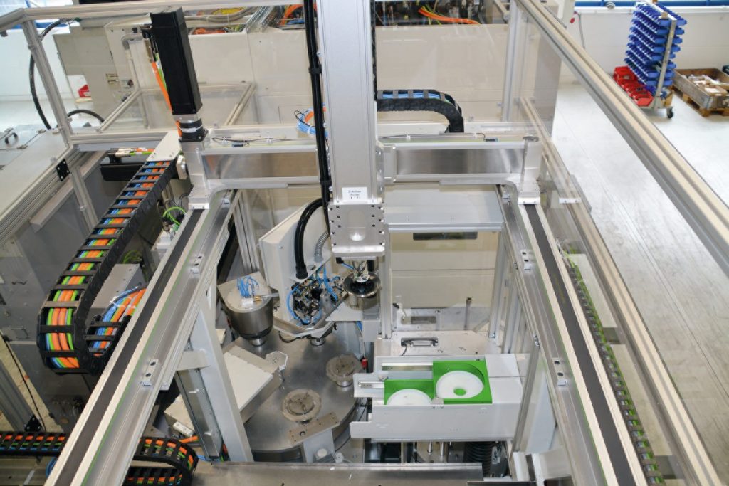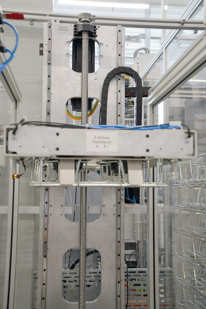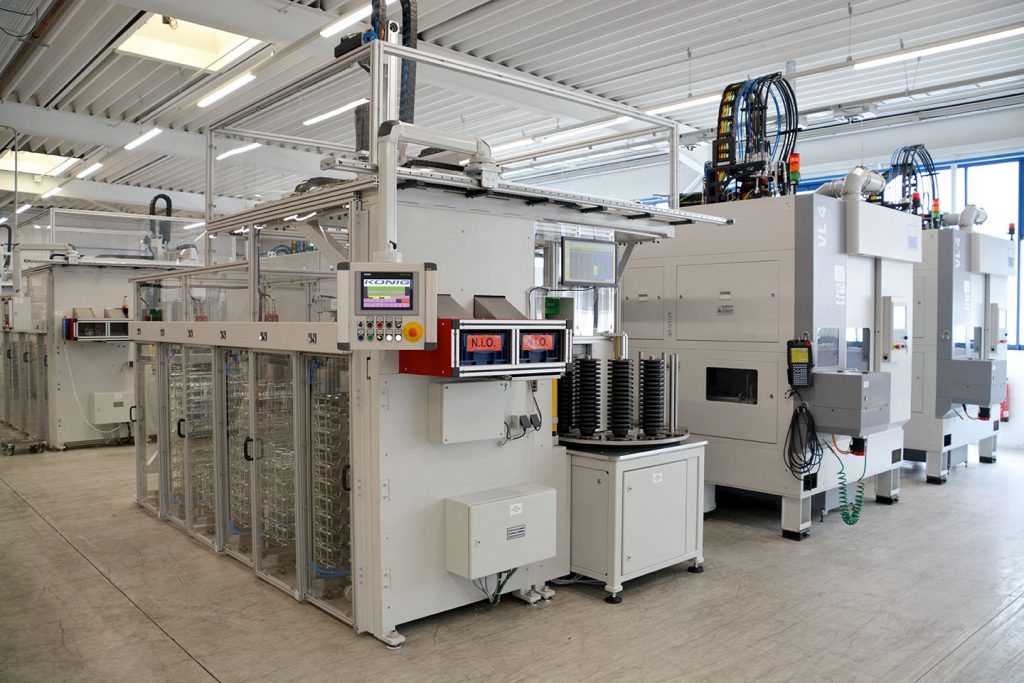 Bereits sechs Fertigungszellen auf Basis dieses neuen Konzepts sind in den Werkshallen von König Automotive aufgestellt, einem Lohnfertiger für Automobilzulieferer, aus dem König Automatisierungstechnik 2018 als eigenständig agierendes Unternehmen hervorgegangen ist. Derzeit werden auf den Linien in vier Schichten Komponenten für ein CVT-Getriebe gefertigt. Aufgrund des hohen Automatisierungsgrads kann ein Mitarbeiter drei Linien mit jeweils zwei Drehmaschinen bedienen. „Wir stehen da aber noch ganz am Anfang des Projekts. Da ist noch Optimierungspotenzial“, sagt Tobias Hauser, Konstruktionsleiter bei der König Automatisierungstechnik. „Bei anderen Anlagen haben wir mit Hilfe von Robotern erreicht, dass auf einen Maschinenbediener zehn Drehmaschinen kommen. Das ist auch hier langfristig unser Ziel.“ Beim Handling der Werkstücke in der Fertigungszelle hat sich Hersteller von Anfang an gegen den Einsatz eines Roboters entschieden. Aus gutem Grund, wie Hauser erläutert: „Ein Roboter ist schwer, nimmt viel Platz ein, erfordert pro Schicht einen Experten falls Probleme auftreten und ist nicht zuletzt teuer.“
