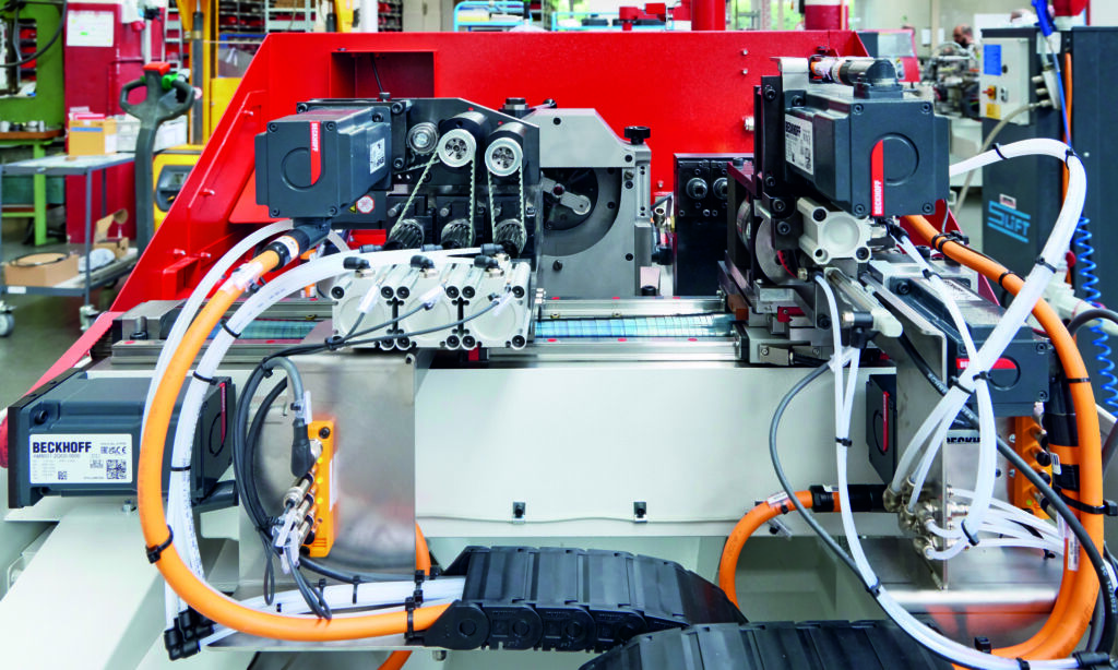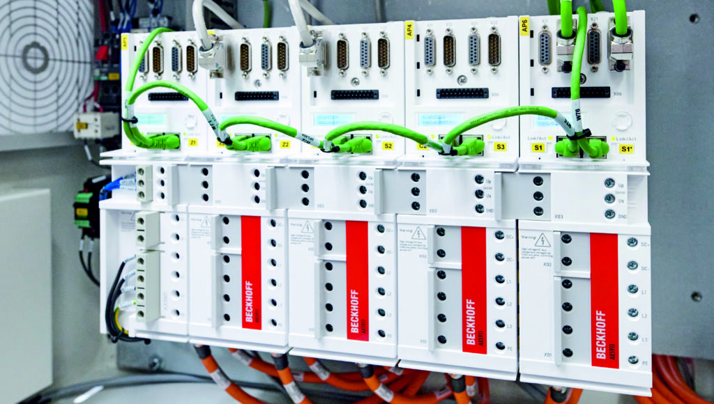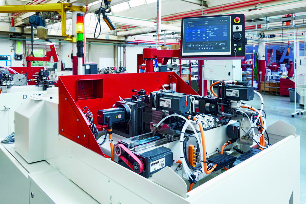 Das gemeinsam angepasste Steuerungskonzept auf Basis von Twincat 3 und einem Schaltschrank-IPC vom Typ C6920 funktioniert in allen Maschinenbaureihen von Esco und bildet die Grundlage für die langfristige und sichere Migration aller CNC-Maschinen auf PC-based Control. Insgesamt hat Esco seit 2020 bereits rund 150 Maschinen mit der Twincat-CNC-basierten Steuerungstechnik in unterschiedlichen Konfigurationen ausgeliefert. „Wir sind jetzt viel flexibler und können aus dem gesamten Portfolio genau die benötigte Rechenleistung und Antriebskonfiguration zusammenstellen, inklusive Safety“, bestätigt Fankhauser. Bei einer Escomatic D6 Twin sind etwa zwölf Servoachsen zu regeln und drei CNC-Kanäle zu berechnen. Die Einkabeltechnik OCT der eingesetzten Servoverstärker AX5000 und Servomotoren AM8000 spart dabei Platz im Schaltschrank und in der Maschine, weil nur noch eine, dünne Motorleitung verlegt werden muss. Auch das Thema Signalstörungen bei den Feedback-Systemen sei seit der Umstellung auf diese Lösung vom Tisch.