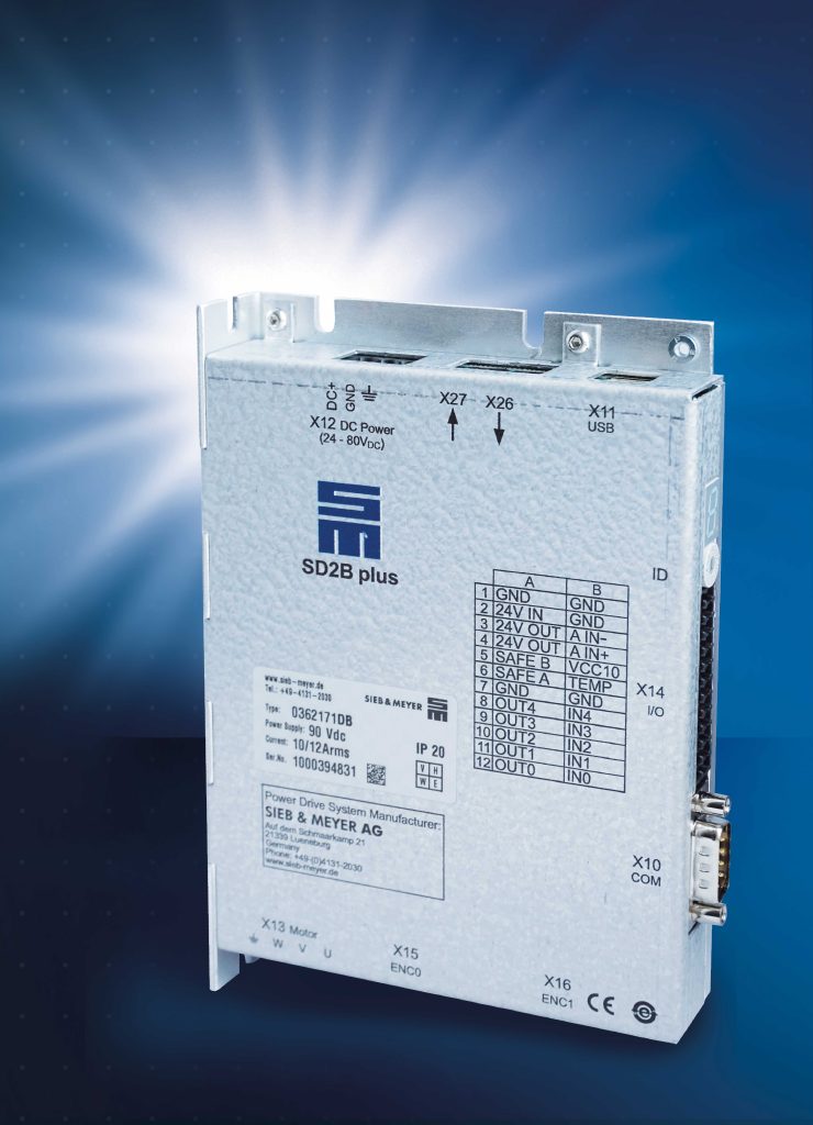 Das Gerät eignet sich als hochdynamischer Servoverstärker für rotative und lineare Niedervolt-Servomotoren, aber auch für den optimierten Betrieb von hochdrehenden Niedervolt-Synchron- und Asynchronmotoren. Die Standardversion bietet ein Optimum aus maximaler Betriebsspannung und Nenn-/Spitzenstrom (80VDC/10A), um möglichst vielen Applikationen gerecht zu werden. Der SD2B plus ist auch als Hochstromversion erhältlich. Dieses Gerät erreicht einen 30 Prozent höheren Nenn- und Spitzenstrom bei unverändertem Bauvolumen. Der höhere Ausgangsstrom von 13A erweitert das Einsatzfeld des Geräts nochmals.