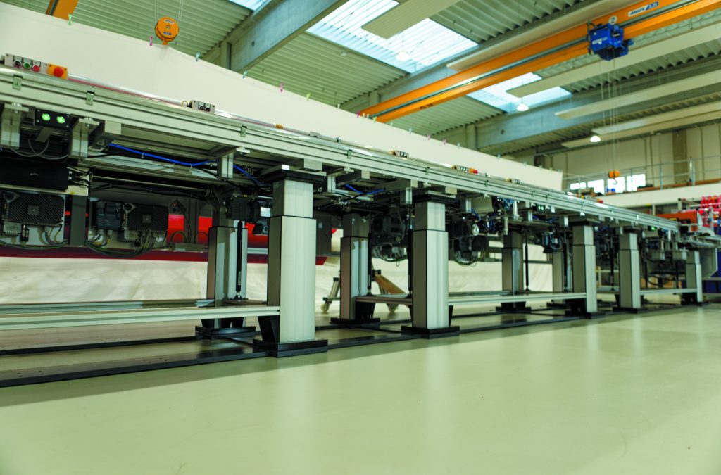 Für die Höhenverstellung des Fügetisches sorgen insgesamt 22 Hubsäulen vom Typ RK Powerlift M für Druckbelastungen bis 3.000N und Zugbelastungen bis 1.500N, die synchron verfahren werden können. Sie passen die Tischhöhe im Bereich von 850 bis 1.050mm innerhalb weniger Sekunden an die entsprechende Körpergröße an. „Die leistungsstarken Hubsäulen von RK Rose+Krieger haben ein ansprechendes Design. Anders als vergleichbare Produkte auf dem Markt benötigen sie keinerlei Verkleidung, sondern können so verbaut werden, wie sie geliefert werden“, betont Leo.