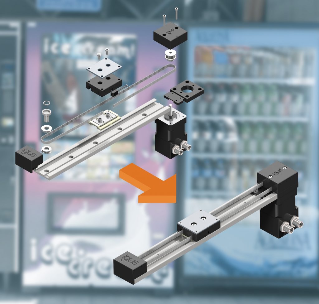 Igus hat auf Basis seines flachen Linearsystems die kompakte Zahnriemenachse Drylin ZLN für schnelles Automatisieren in engen Bauräumen entwickelt. Sie besteht aus komplett steck- und schraubbaren Standardelementen. Ausgestattet mit Motor und Steuerung kann das System Lasten bis zu 20N und eine Übersetzung von 60mm pro Umdrehung realisieren. Für die Bauweise der 27mm hohen und 40mm breiten Achse sorgt die flache Linearführung Drylin N. Der kugelgelagerte Zahnriemen ermöglicht die Dynamik und die hohen Geschwindigkeiten der Achse. Durch den Einsatz von Hochleistungspolymeren im Gleitschlitten der Führung sollen Anwender komplett auf Schmiermittel und damit auf die Wartung der Achse verzichten können. Die Achse kann mit Nema-Schrittmotoren oder auch mit EC-/BLDC-Gleichstrommotoren sowie passender Dryve-Steuerung komplett anschlussfertig bestellt werden.