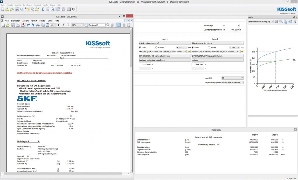Im Rahmen ihrer Kooperation haben SKF und KissSoft eine neue Schnittstelle geschaffen, die den Entwicklungsprozess von Getrieben vereinfachen soll. Mit der Schnittstelle können Ingenieure die für die Maschinenkonstruktion geeigneten Lager auswählen. Die aktuellen Lagerdaten werden den Anwendern über cloudbasierte Dienste zur Verfügung gestellt. Die entsprechenden Ergebnisse erhält der Anwender in Form eines übersichtlichen Engineering-Reports, den die KissSoft-Kalkulationssoftware liefert. Die Schnittstelle umfasst verschiedene Konstruktionsdaten und Designvorschriften bzw. -einschränkungen, aktualisiert sie selbsttätig und dokumentiert sie durchgängig in in einem benutzerfreundlichen Format.