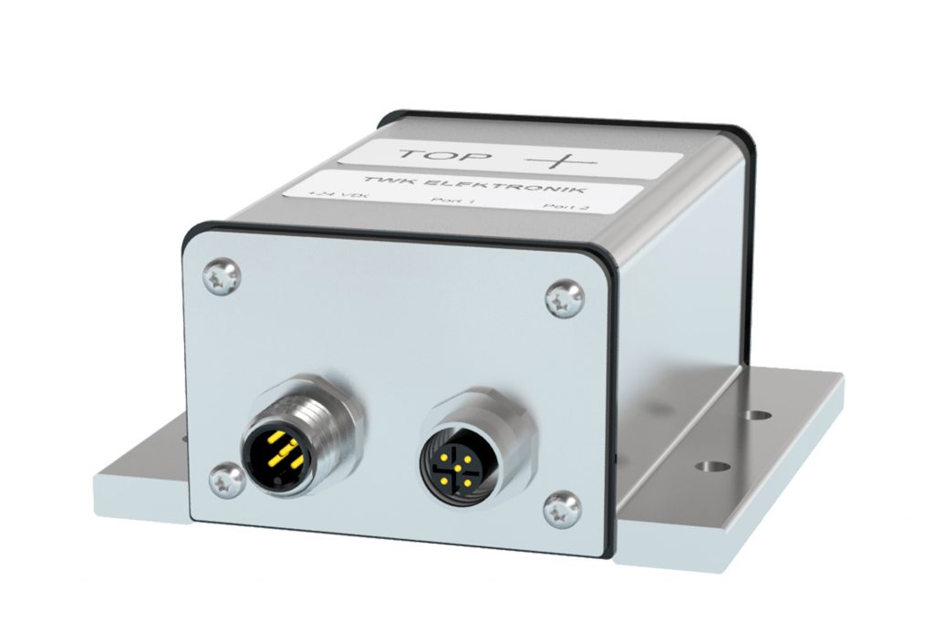 Das Zusammenführen und Aufbereiten der Messgrößen des ursprünglichen Beschleunigungssensors und des Gyroskops geschieht mit Hinzunahme eines Kalman-Filters. Diese Filtertechnologie ermöglicht es, den auszugebenden Messwert zu kalkulieren, korrigieren und zu prädizieren, d.h. für eine kurze Zeit vorausschauend zu bestimmen. Dies ist notwendig, da bei einwirkenden dynamischen Störbeschleunigungen der Beschleunigungssensor keinen exakten Neigungsmesswert liefern kann und stattdessen der Drehratensensor mithilfe des Kalman-Filters einen Messwert berechnet und prädiziert. Der Drehratensensor reagiert im Gegensatz zum Beschleunigungssensor nicht auf lineare Störbeschleunigungen, sondern nur auf Änderungen des Neigungswinkels. Alle durchgeführten möglichen applikationsnahen Simulationen und Messungen bei TWK zeigen, dass das Sensor-Fusion-System exakt und sicher arbeitet. Das System gewährleistet nicht nur bei mobilen Maschinen einen sicheren, gefahrvermeidenden Einsatz, sondern auch während des Betriebes von Motoren, Hydraulikpumpen oder anderer Aktionen, die starke Vibrationen erzeugen. Die Sensoren haben einen Arbeitstemperaturbereich von -40° bis +85°C und messen Neigungswinkel bis ±100° bei einer Auflösung von 0,01° und einer Genauigkeit von ±0,1°. Es kann ein- oder zweiachsig gemessen werden. Das stabile Aluminiumgehäuse hält bei einer Schutzart von IP67 auch widrigen Umweltbedingungen Stand. Höhere Schutzarten sind auf Anfrage möglich.