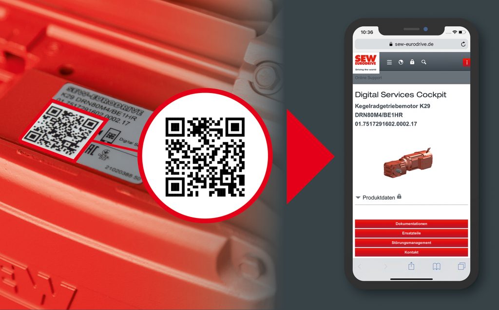 SEW-Eurodrive will durch neue Produktlabel schnellen Zugang zu Services im Online Support ermöglichen. So soll sich die Suche nach Ersatzteilen, Produktdaten oder Dokumentationen vereinfachen. Die Label sind mit einem QR-Code versehen und werden auf allen SEW-Produkten angebracht, die eine Seriennummer haben. Der Kunde erhält die zugehörigen Informationen per Standard-Browser direkt auf sein Smartphone oder Tablet. Als Vorteile nennt SEW eine schnelle Produktidentifizierung, optische Kontrolle der Einbaulage sowie direkten Zugriff auf technische Produktdaten, Dokumentationen, Ersatzteil- und Ersatzproduktauswahl oder das Störungsmanagement. Das Label soll in Deutschland sukzessive ab Mitte des Jahres eingeführt werden.