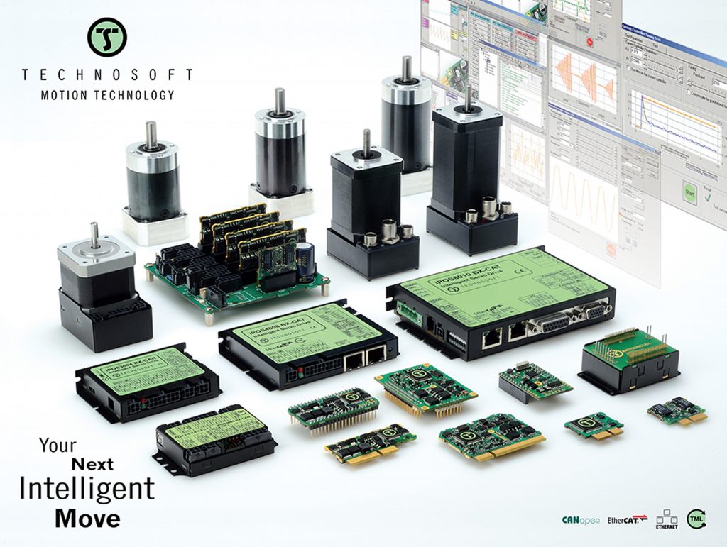 In vielen industriellen Anwendungen sorgen kleine, verborgene Motoren für die präzise Bewegungsumsetzung der verschiedenen Komponenten wie Linear- oder Rotationsachsen. Dabei wird die Steuerung der einzelnen Motoren in der Regel über eine Master/Slave-Architektur realisiert, bei der der Master mit den entsprechenden Befehlen und Bewegungsprofilen programmiert sein muss. Er muss den Zeitpunkt und die Durchführung jeder Bewegung kontrollieren. „Allerdings sind dabei alle Antriebe von dieser zentralen Intelligenz abhängig und können nicht selbstständig untereinander kommunizieren oder sich synchronisieren, um z.B. gleichzeitig Bewegungsabläufe auf allen Achsen zu starten“, erklärt Dr. Radu Giuclea, Manager Sales & Engineering bei Technosoft. „Das führt unweigerlich zu hohem Programmieraufwand, da die gesamte Anwendungsarchitektur auf die Master-Steuerung und deren Kommunikationsumgebung hin geplant und konfiguriert werden muss.“ Insbesondere bei Mehrachsanwendungen könne dies zu einer Herausforderung werden. Zudem müsse für die geeignete Lösung der Motorentyp und das Kommunikationsprotokoll identifiziert und berücksichtigt werden. Daher hat sich Technosoft auf intelligente Antriebsregler spezialisiert, die bereits einen leistungsstarken Motor und Motion Controller in einer kompakten Einheit vereinen, sodass sie auch ohne externe Master-Einheit komplexe Bewegungen umsetzen können. Dazu nutzt das Unternehmen die selbst entwickelte Programmiersprache Technosoft Motion Language (TML), mit der sich komplexe Befehle vereinfacht auf den Speicher der einzelnen Regler programmieren lassen. Da kein datenintensiver Austausch zwischen ihnen notwendig ist, können sie ohne Master-Befehle und unabhängig voneinander Bewegungsprofile ausführen, aber sich auch untereinander synchronisieren. Mit dieser Flexibilität lässt sich sogar eine laufende Bewegung anpassen. Beispielsweise kann über ein HMI das Bewegungsprofil geändert und eine Zwischenposition gesetzt werden.
