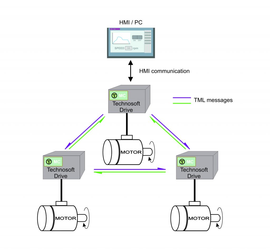 Anstatt darauf zu warten, dass eine zentrale Master-Steuerung Befehle erteilt, kann nun jeder Antrieb selbstständig aktiv werden. So lassen sich auch mehrere Achsen gleichzeitig bewegen (multicast), ohne einen großen Datenfluss über die übergeordnete Steuerung zu generieren. Dabei kann ein einzelner Antriebsregler auch selbst als Master oder Kommunikationszentrale definiert werden, um z.B. alle Achsen in einem Netzwerk zu synchronisieren. Gleichzeitig behält der Anwender über die PC-Software oder ein HMI Zugriff und kann bei Bedarf unmittelbar das Bewegungsprofil ändern – etwa eine Zwischenposition setzen oder die Geschwindigkeit anpassen. Mit den TML-Funktionen lässt sich auch das gesamte Homing programmieren und der Antrieb so einstellen, dass er selbstständig wieder auf eine Startposition geht, sobald dies erforderlich ist. „TML ermöglicht zudem, komplette Bibliotheken für verschiedene Master-Umgebungen oder bestimmte SPS-Typen zu schreiben, sodass die Motoren und deren Kommunikation ohne großen Aufwand untereinander optimal auf die entsprechende Anwendungs- und Hardwareumgebung hin angepasst sind“, so Giuclea.